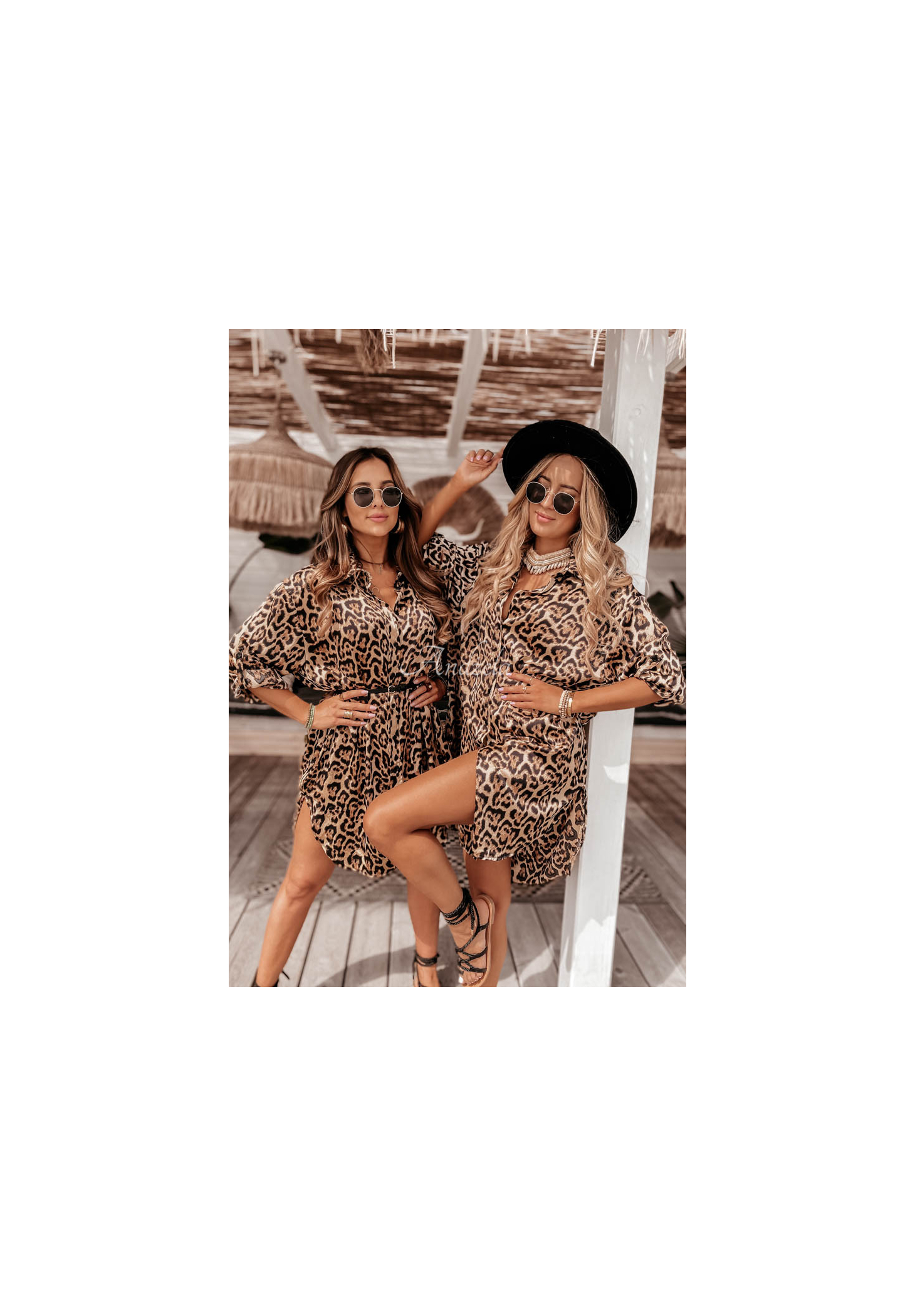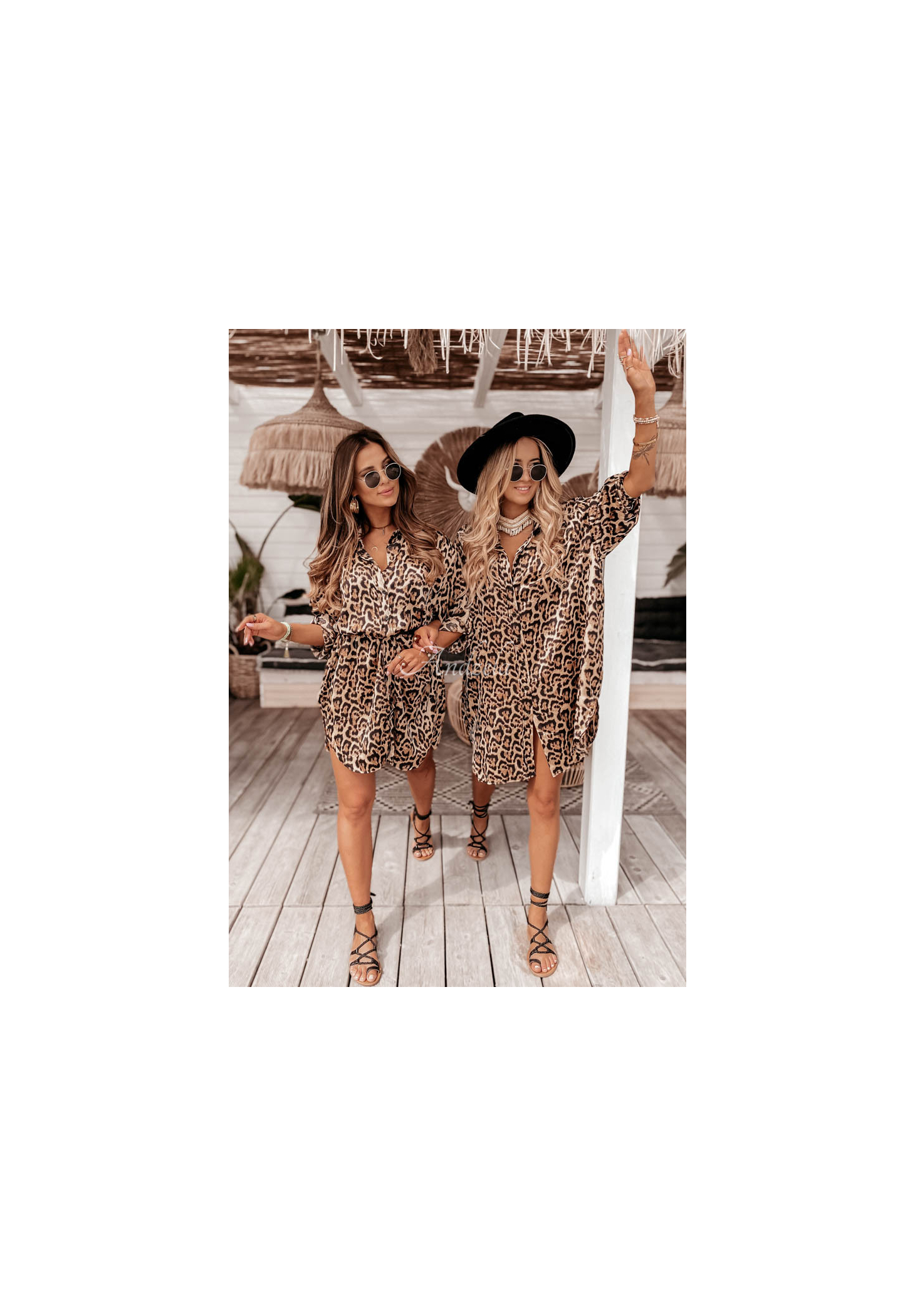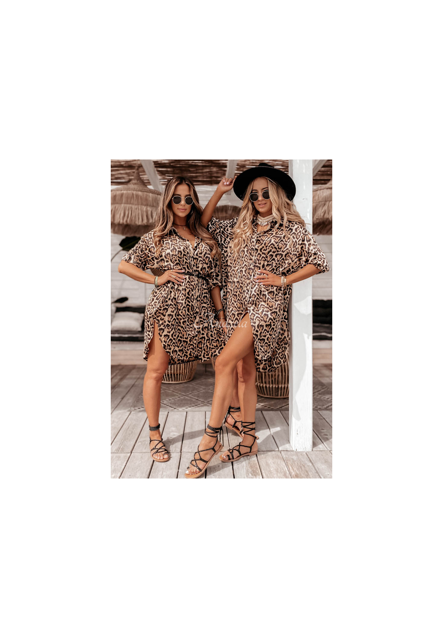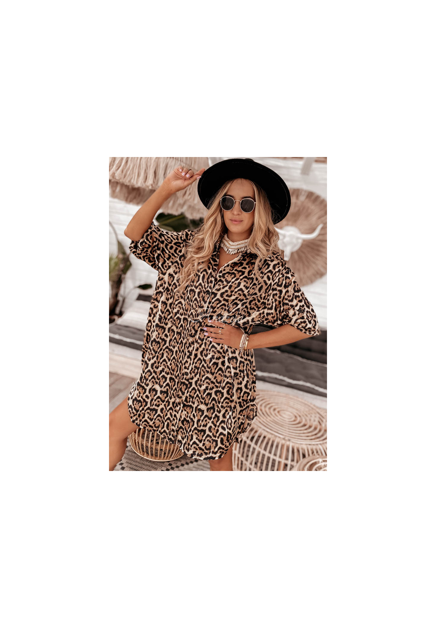 An oversized dress with a shirt-like cut is a great choice for both casual and elegant styling. It was made of smooth, satin-like material, the leopard pattern will blend in perfectly with the holiday mood. The model is buttoned, has sleeves with cuffs and adjustable length. This proposal will present itself really feminine in combination with sandals and a belt to emphasize the waist.
