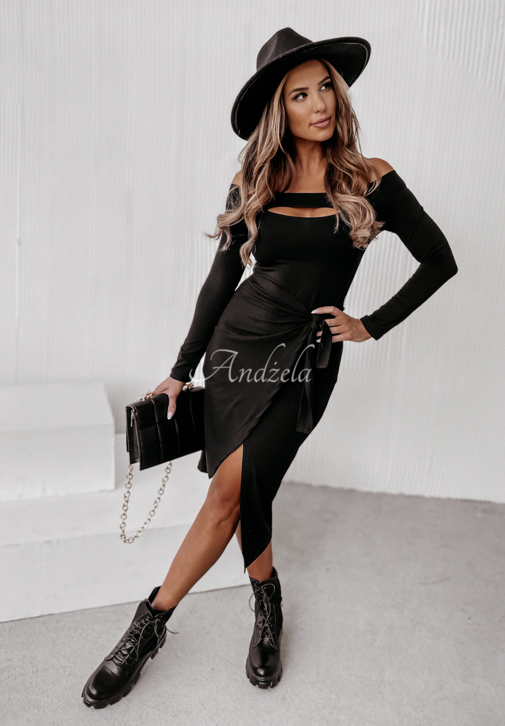 A fitted dress is the perfect option for composing many elegant as well as everyday looks. The model with a slit at the bust has an envelope hem and an opening that will expose the leg. The waist dress also has a fabric belt, which is sewn on the sides and will allow you to accentuate your figure. Pair it with long heeled boots for a strong, feminine look.