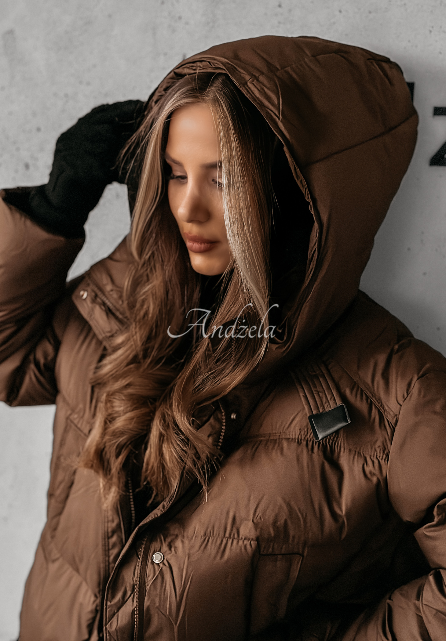 The down jacket is a proposal created for cold days in the autumn-winter season! It is an insulated model of a slightly shorter cut with a non-removable hood. There are functional pockets on the front, and the long sleeves are finished with sweater cuffs. At the bottom there are adjustable ties, allowing you to taper the edges of the whole. This option will work well in any woman's closet, as a complement to everyday styling.