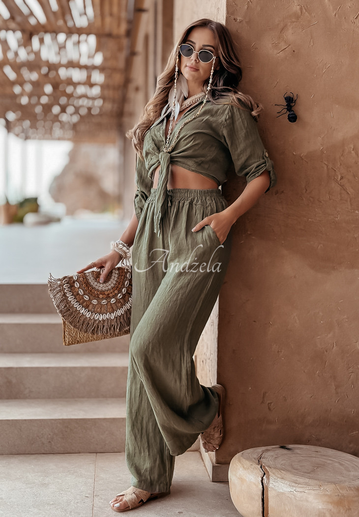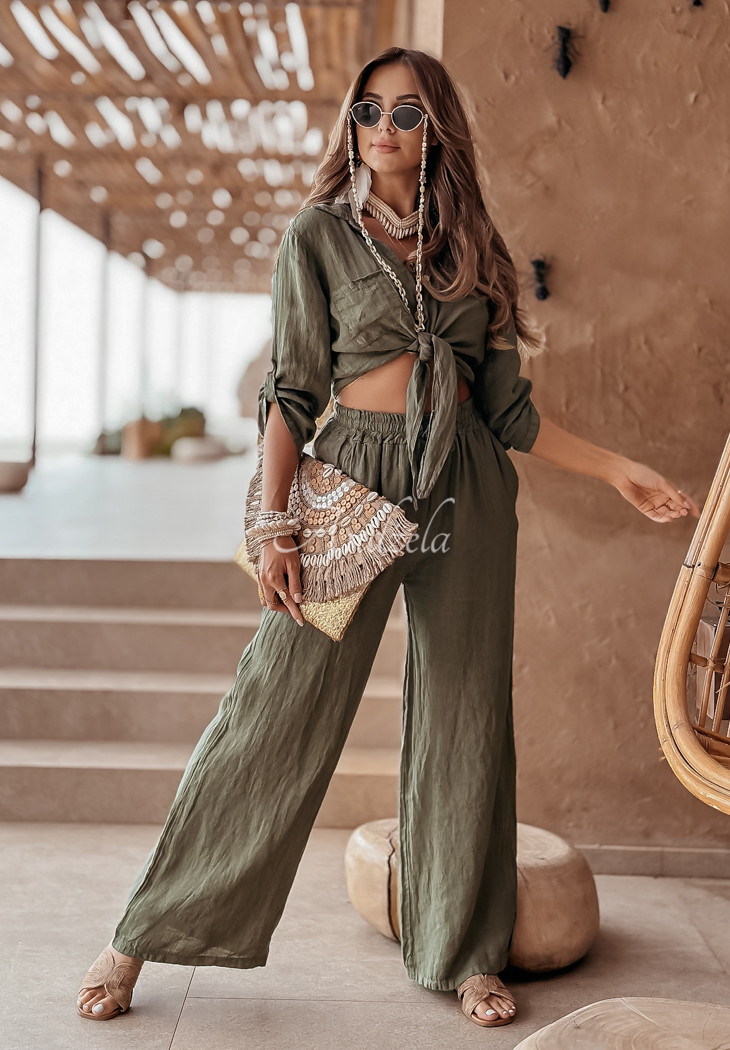 Short linen shirt with ties Summery Essentials khaki