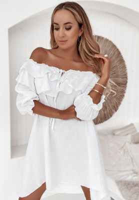 Muslin dress with frills Laguna white