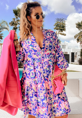 Floral dress with short sleeves and Feel The Moment viscose in sky blue