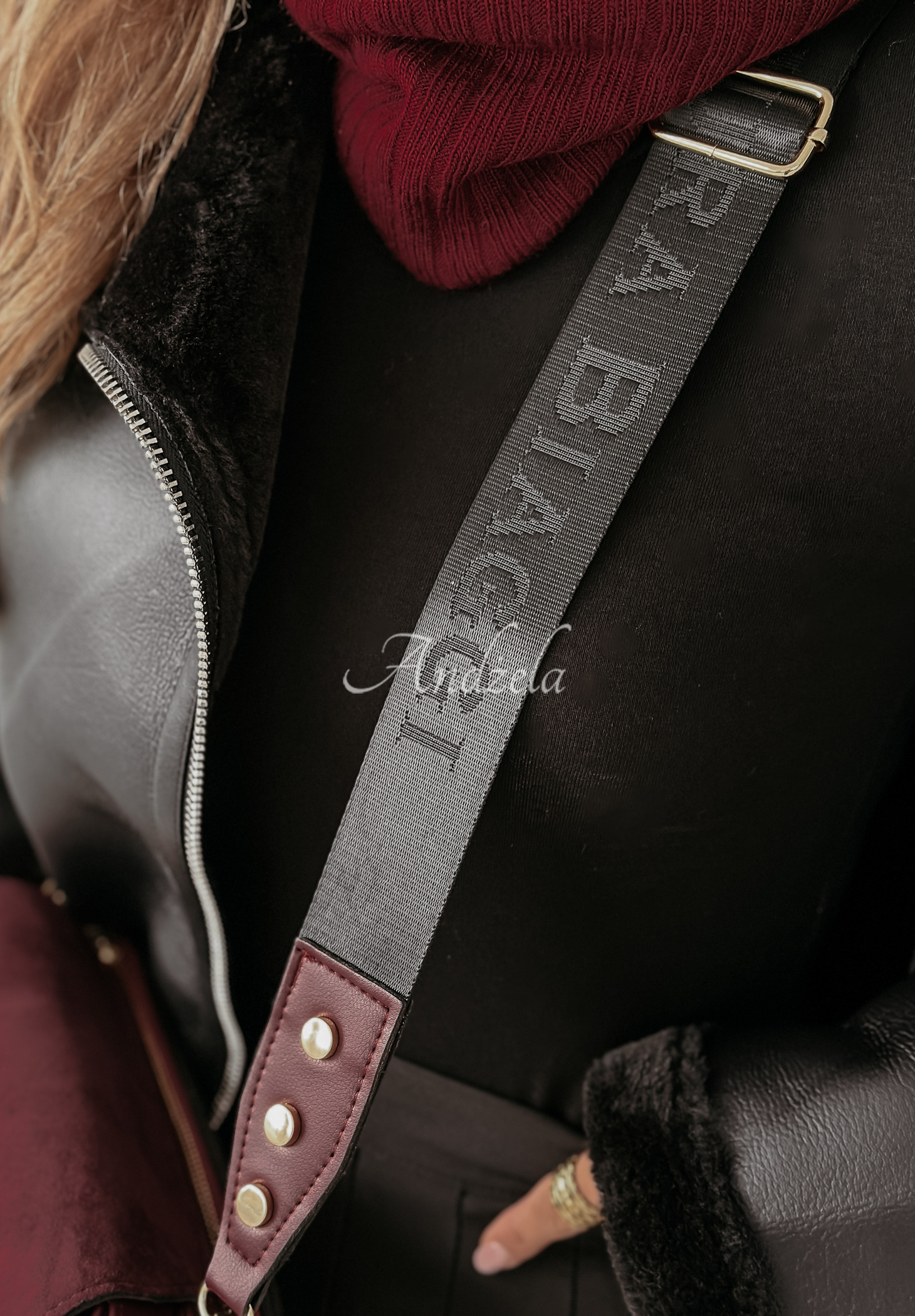 This fashionable handbag is made of a combination of two materials: leather and suede. It is a model with two compartments and a functional zipper pocket,which allows for good organization of the contents. It has two adjustable straps. This proposition is fastened with zippers, the whole thing is completed with gold details, giving it elegance.