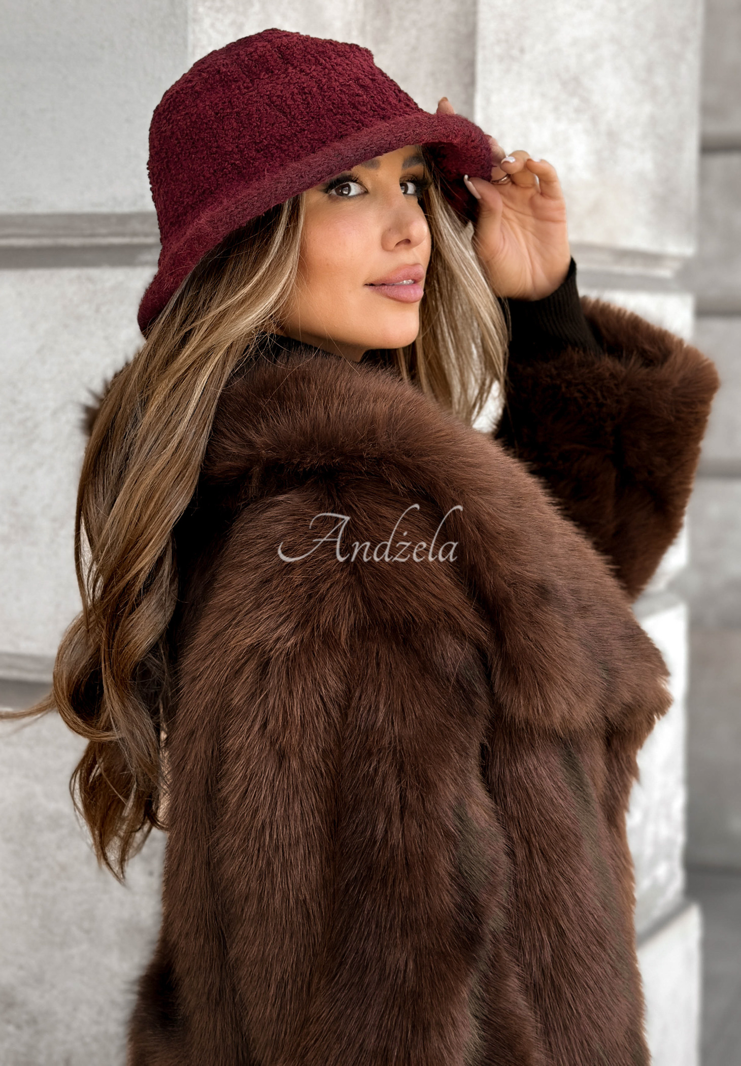Tell Me Again sheepskin bucket hat burgundy