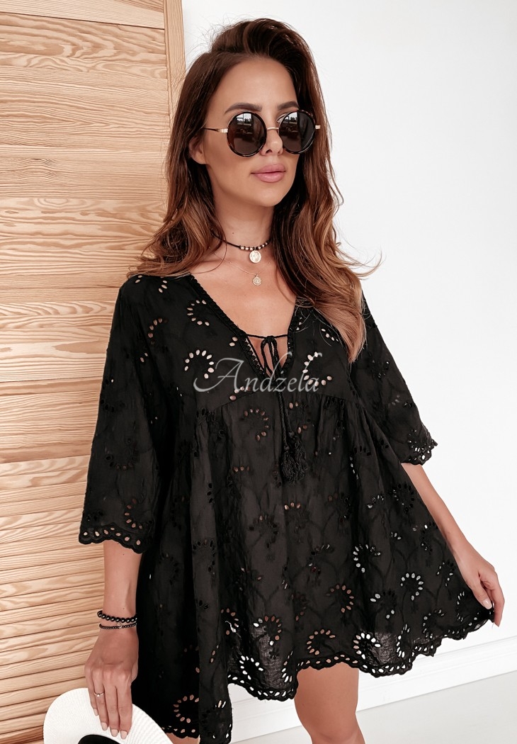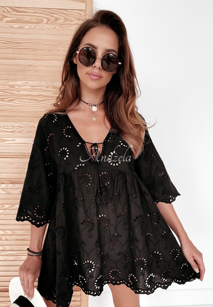 Blouse in boho style is a great basis for everyday styling in the spring-summer season. The delicate openwork material makes the whole thing light and airy, and the deep neckline gives it femininity. The model is made of high-quality material, and is available in two color versions.
