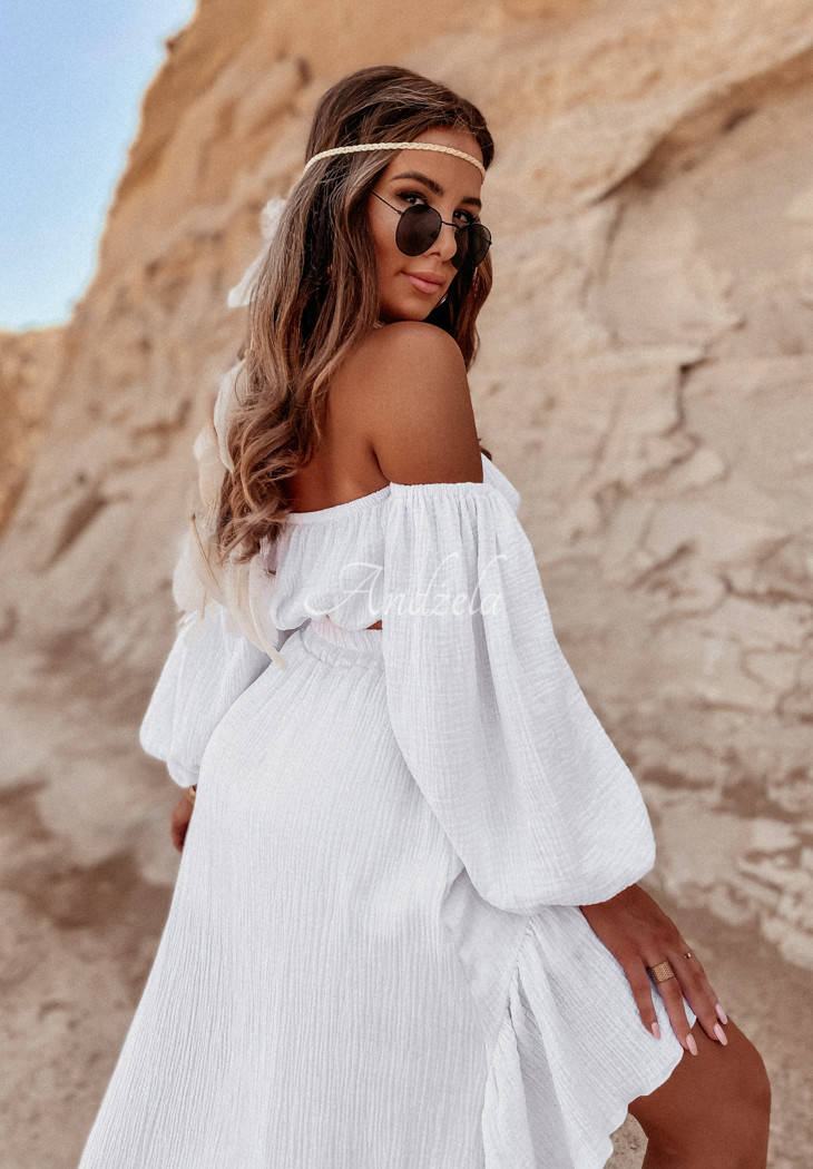 Muslin spangled blouse with ties Malta white