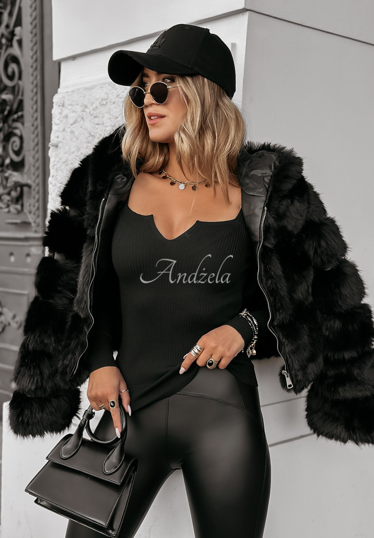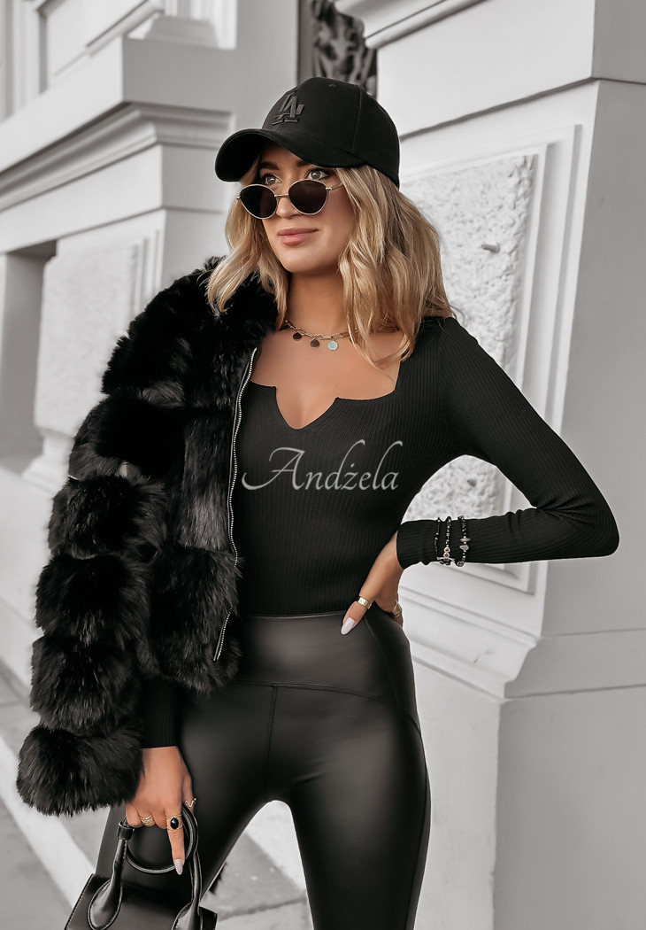 A fitted blouse made of ribbed material is an excellent choice for composing a variety of outfits. The model has a square neckline with a decorative cutout, and thanks to the elastic material it fits perfectly to the figure. Available in three color versions