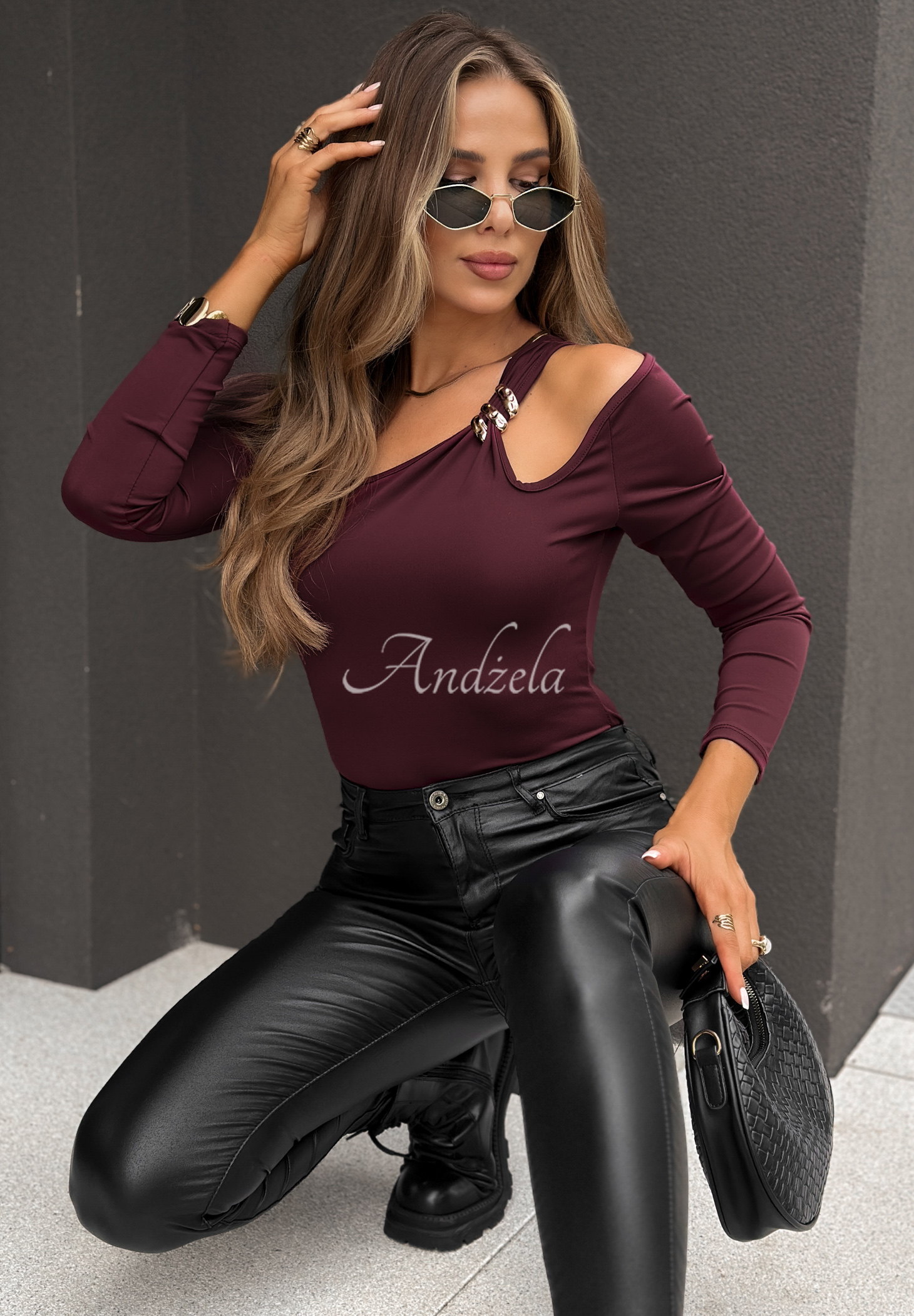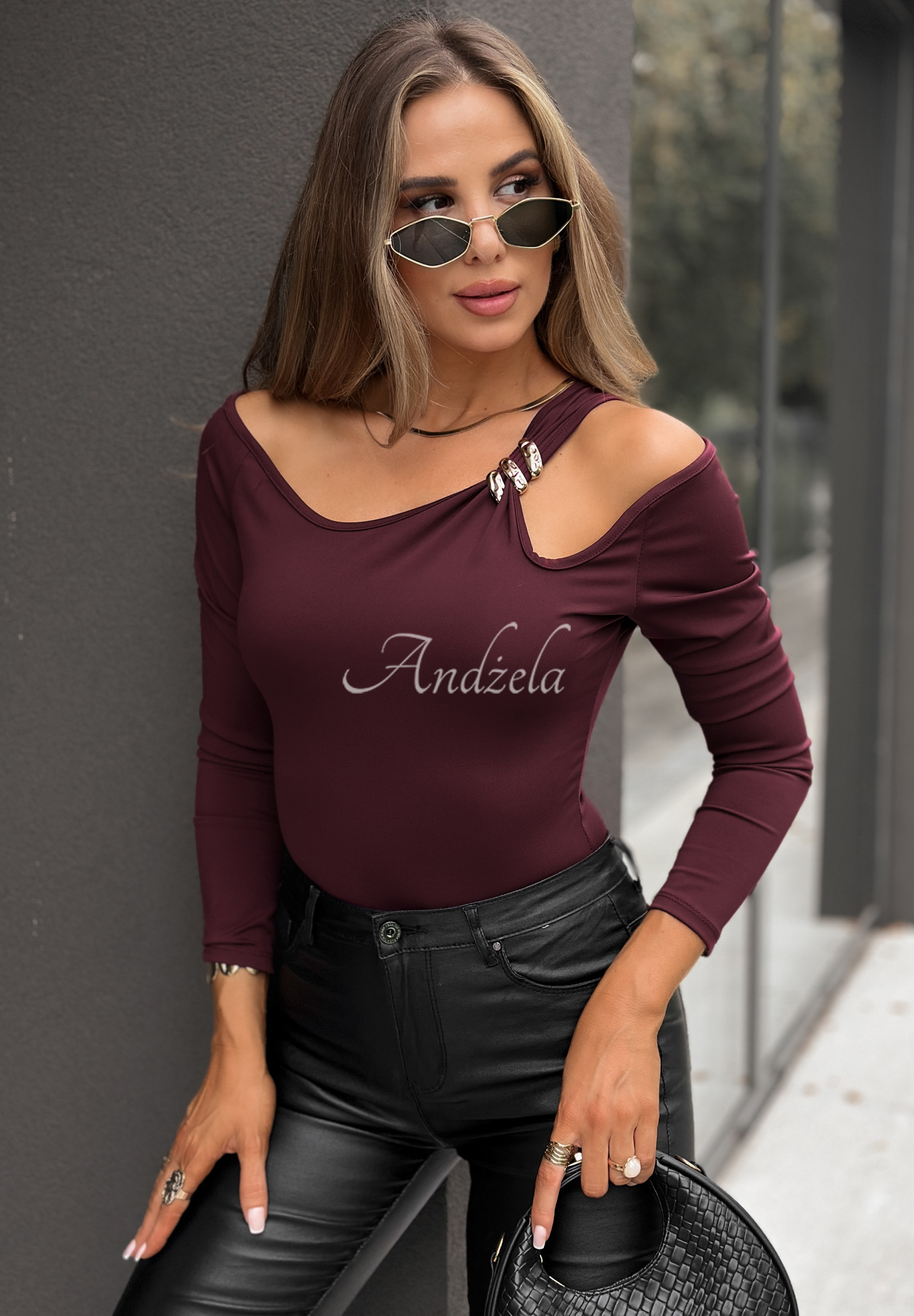 Body with open shoulders, made of stretch fabric. Distinguished by gold detailing, they feature an adjustable hook-and-loop closure.