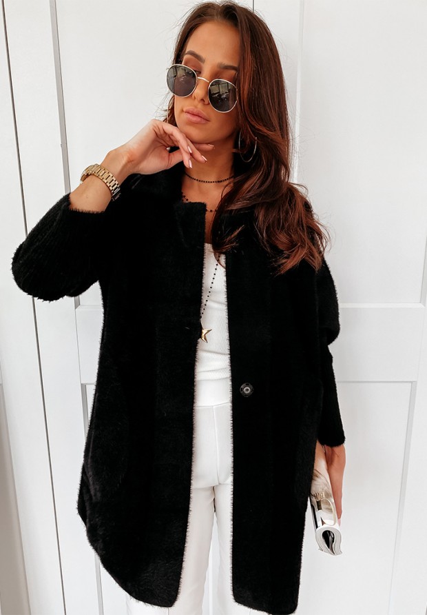 The coat is made of very fashionable and extremely pleasant material. Warm, ideal for spring/autumn. Oversize, loose cut to fit elegant, casual as well as sporty styling. Fastened with a concealed fastener, sleeves finished with wide ribbed cuffs. It has a collar and two deep pockets on the sides. Available in several colors.