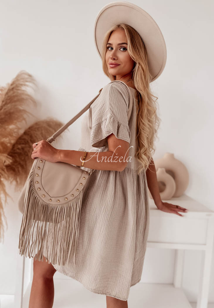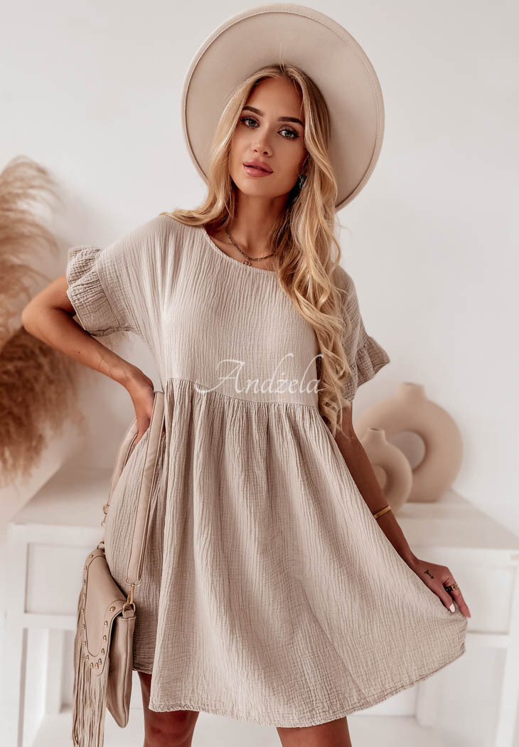 Muslin dress with frills Laguna beige