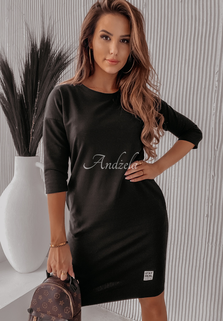 Dress made of high-quality material, which you can also wear as a tunic, should be in your closet. This model, with a rounded neckline and 3/4 sleeves, is perfect for everyday wear or for work. The dress additionally features pockets on the sides, as well as a decorative patch at the bottom on one side. Available in several color versions.