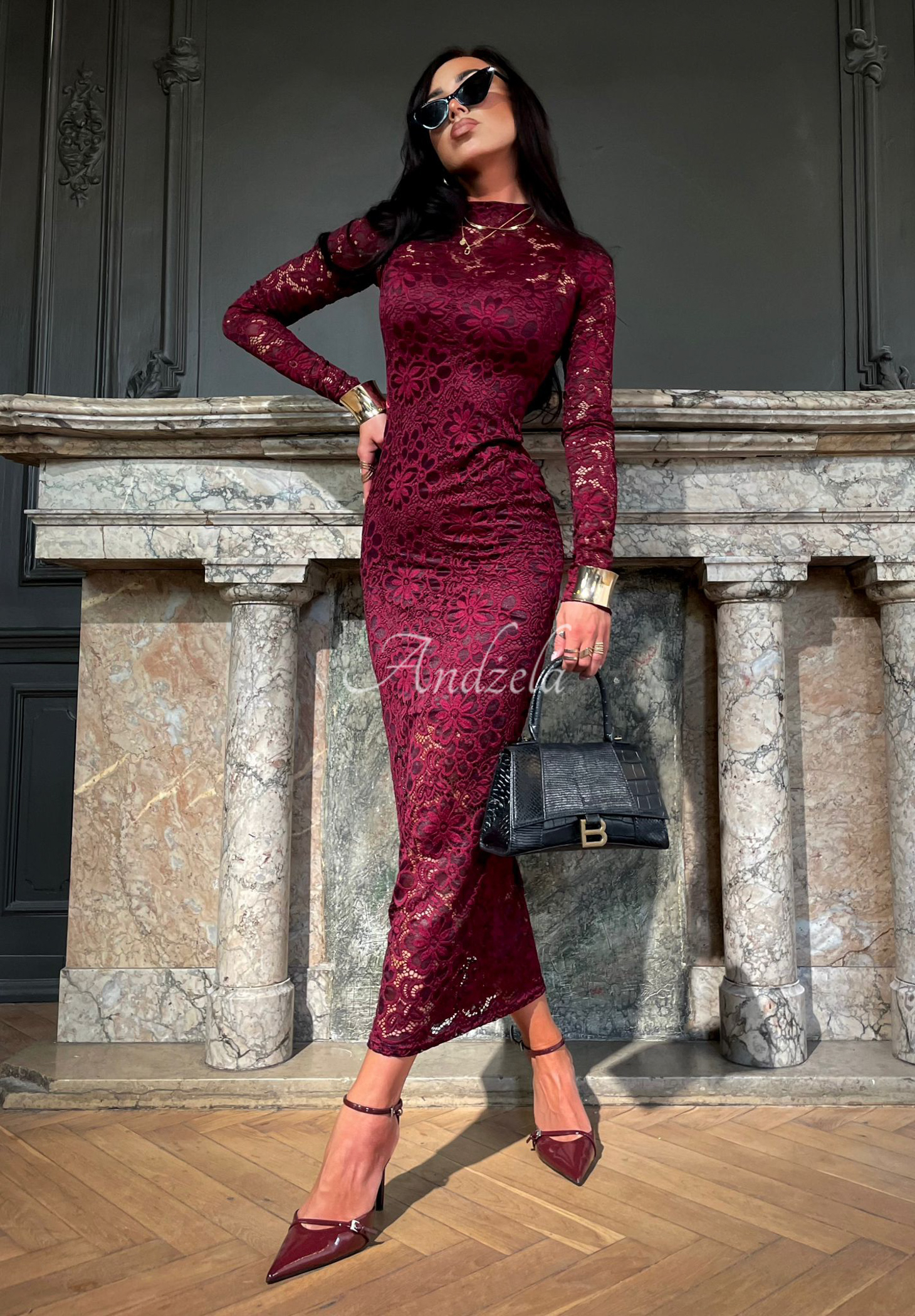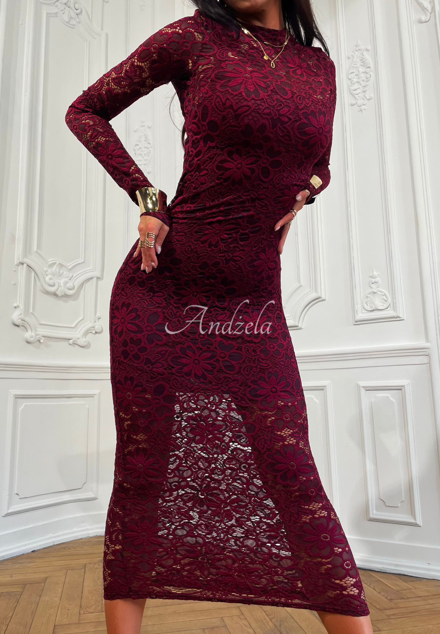 The lace dress is a proposal that will present itself extremely feminine in lookups for various occasions. It was made of delicate, transparent fabric. It is a maxi length model with long sleeves and a round neckline. It comes separately with a short strapless slip, which acts as a lining. The whole thing is really striking and will work perfectly in any closet as a base for elegant styling.