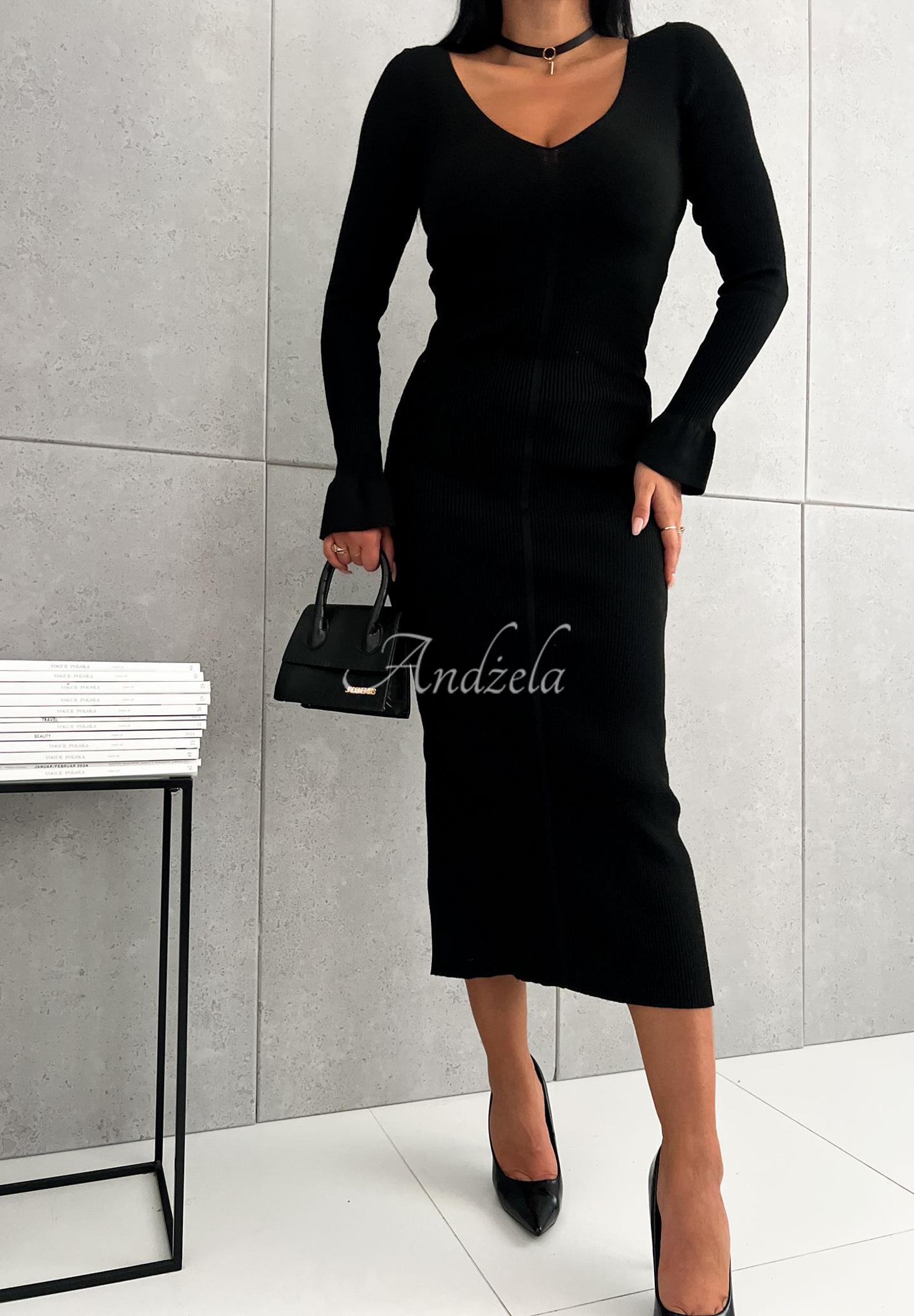 The ribbed maxi length dress is an ideal choice for casual looks as well as more elegant ones. It is distinguished by a striking heart neckline and long sleeves finished with a frill. This proposal was made of high-quality viscose material, so it is extremely comfortable. Thanks to its elasticity, it perfectly emphasizes the figure, showing its assets.