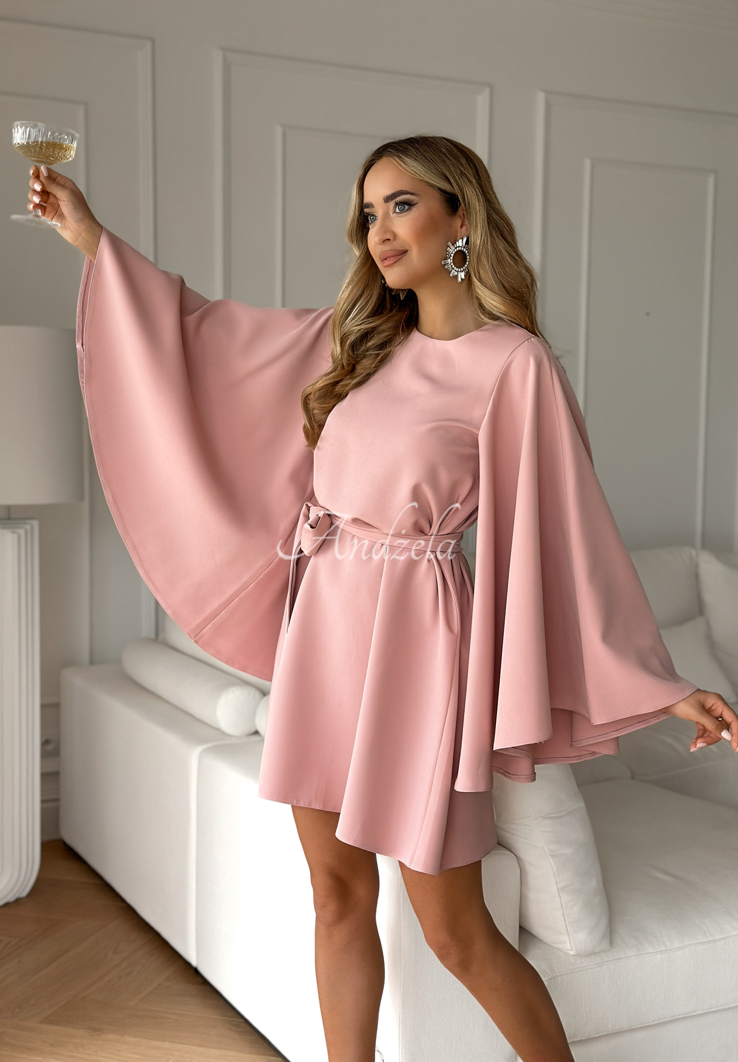 Elegant dress made of smooth and pleasant to the touch fabric. It is an oversized bat cut model with wide sleeves. It features a button closure at the back of the neckline. It also comes with a fabric belt. Design by ANDŻELA!