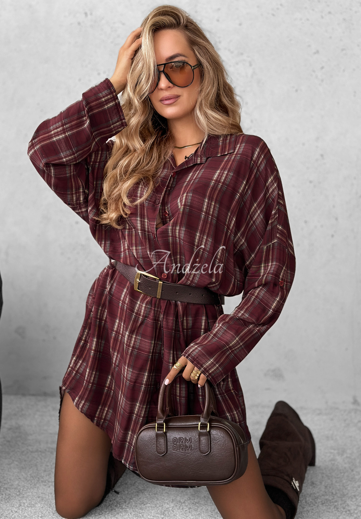 Autumn Central Park burgundy checked viscose shirt dress