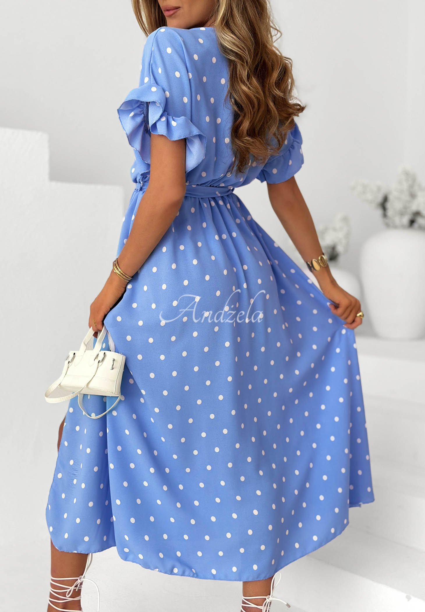 Dress w Spots z paskiem i wiskozą Take A Chance blue