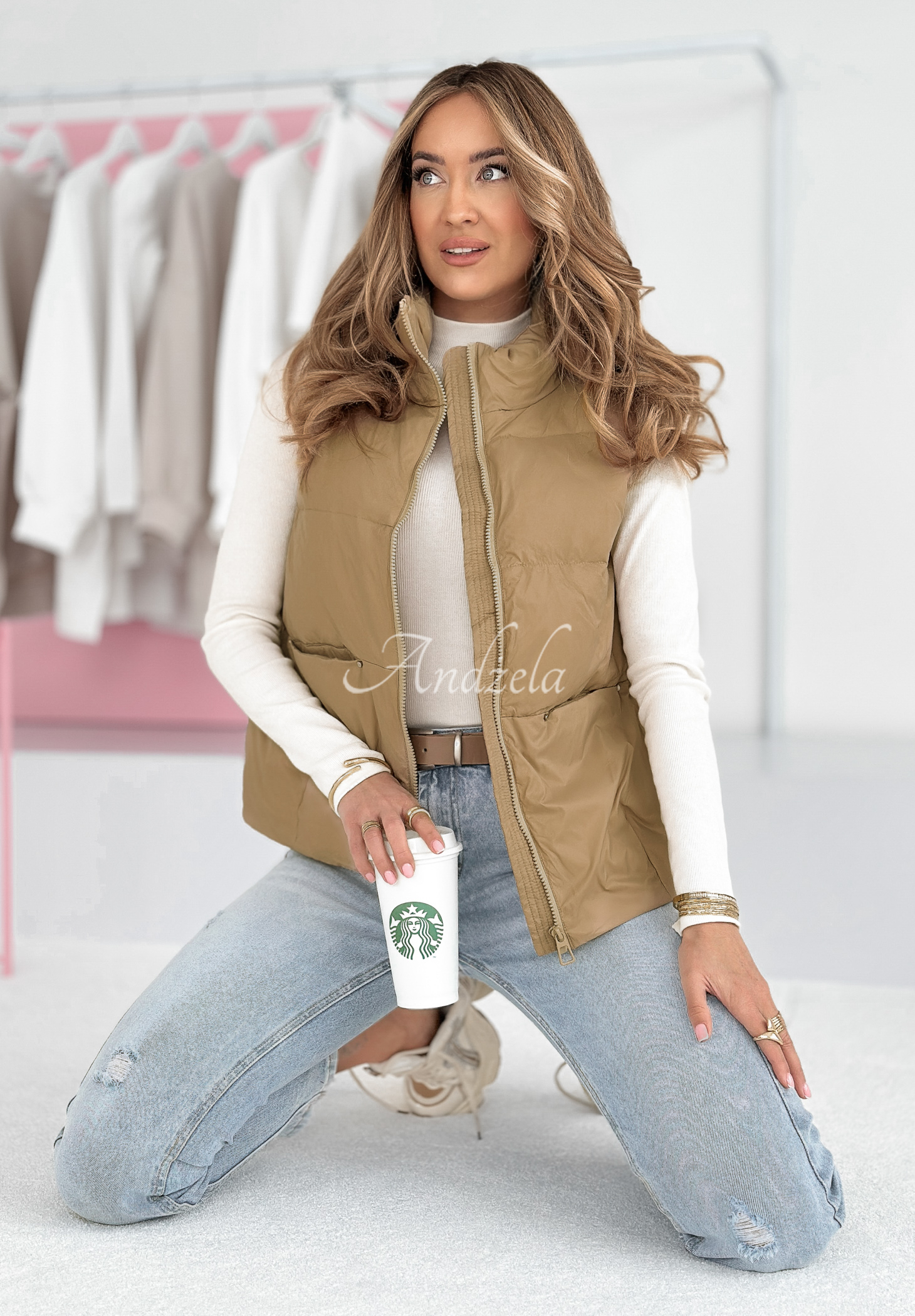 Natural insulated vest is an excellent choice for comfortable styling on colder days. It is a slightly shorter cut model with a zipper closure. It has functional pockets on the front and fashionable quilting. The whole piece will prove phenomenal in any closet in the transitional period.