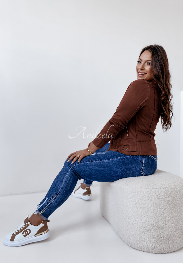 The model is 170 cm tall, size 36/S presented.