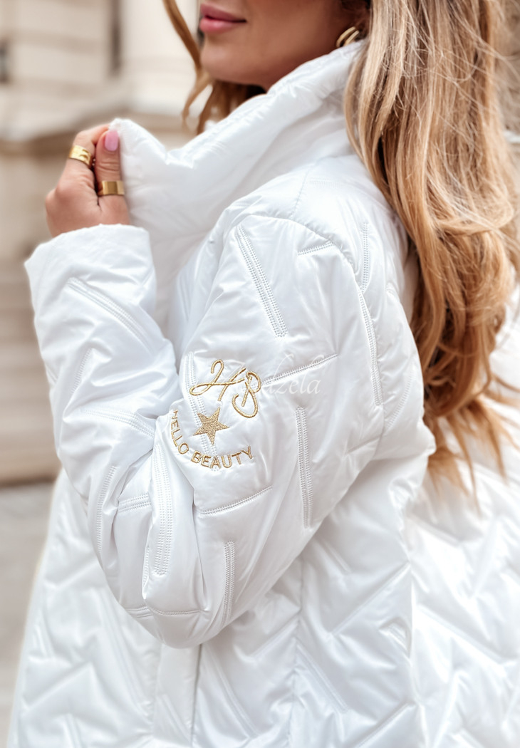 A quilted jacket with light insulation will be perfect for the transitional season. It is a short cut model with a high collar and functional pockets. It is fastened with a zipper with gold trim.