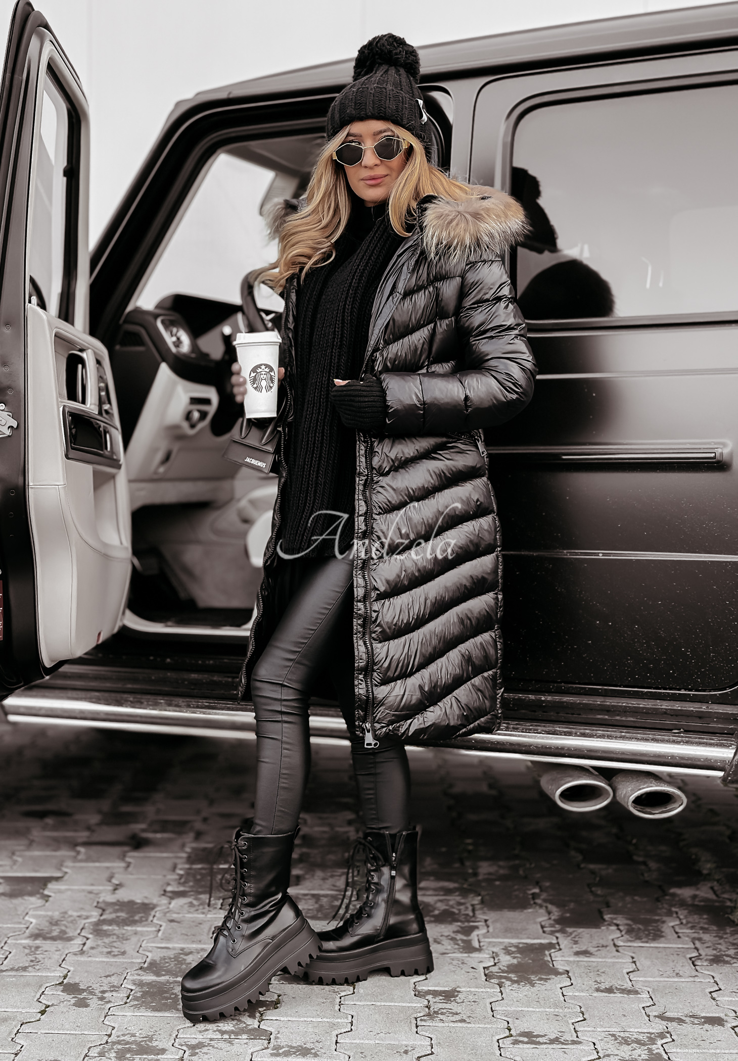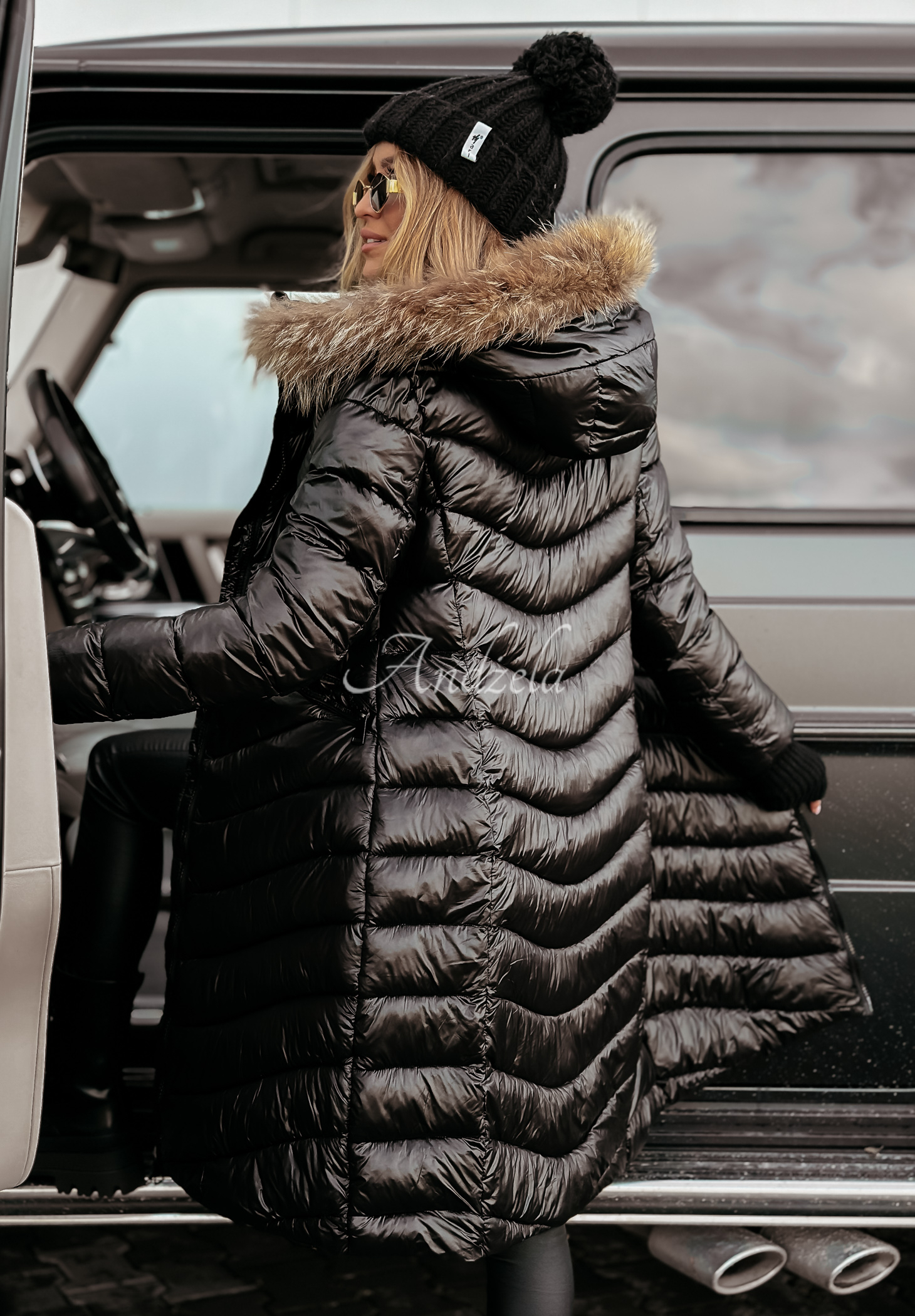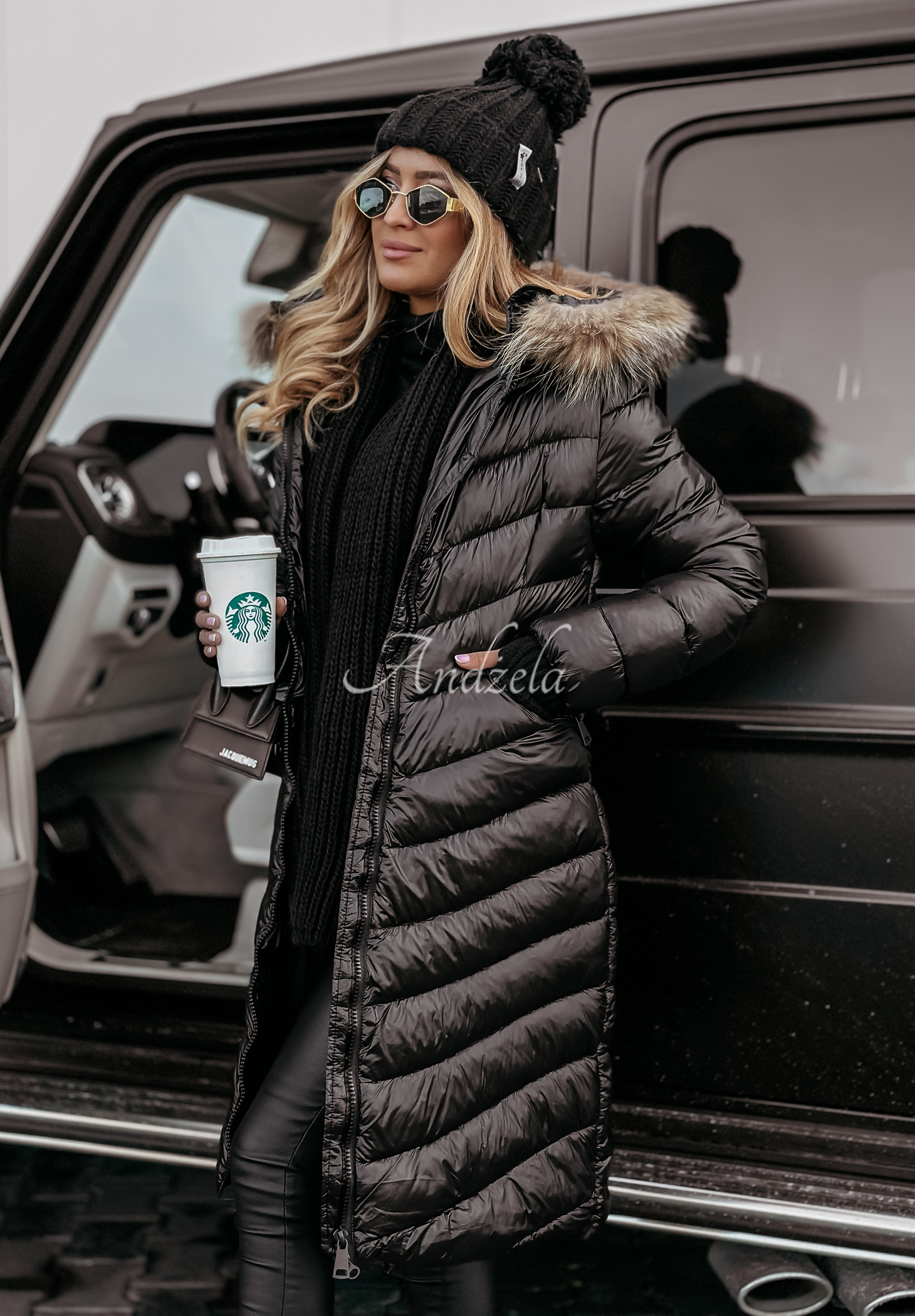 The long jacket, insulated with synthetic down, is zippered and will be a great choice for cold winter days. The model with a large hood is distinguished by a detachable natural fur, which will give the whole thing a great look. The jacket is also distinguished by zippered, asymmetrical pockets at waist level. The long sleeves, are finished with an elastic hem, which will keep the cold air from getting inside.