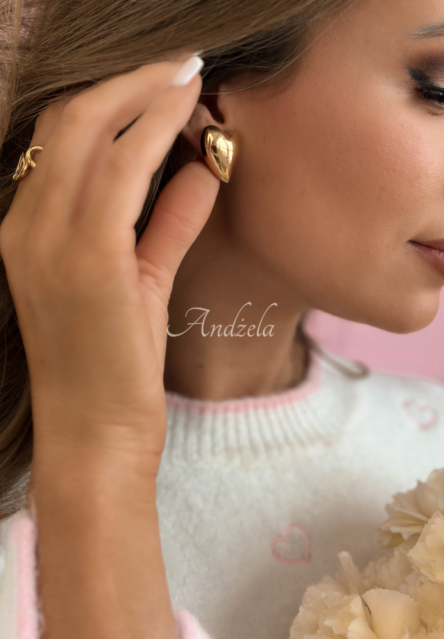 Minimalist earrings in a fashionable heart shape. They are made of high-quality stainless steel with a gold finish. This model has a stud fastening.