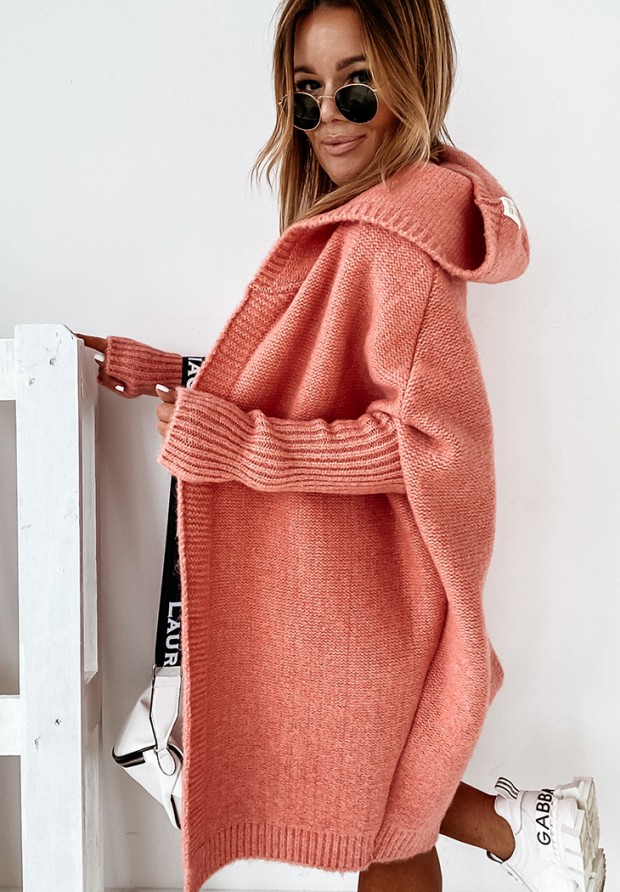 An exceptionally soft hooded cardigan is a must-have in every closet! Simple, yet remarkable cut, it will always present itself phenomenally! It has welts in the sleeves. It is an ideal choice for styling on cold days. It will complement them fantastically and give a completely new character. The product is made of high-quality material, and is available in many color variants.