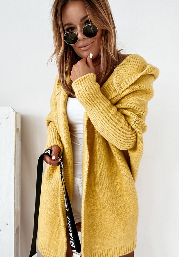 Long oversize cardigan with hood Montevista yellow
