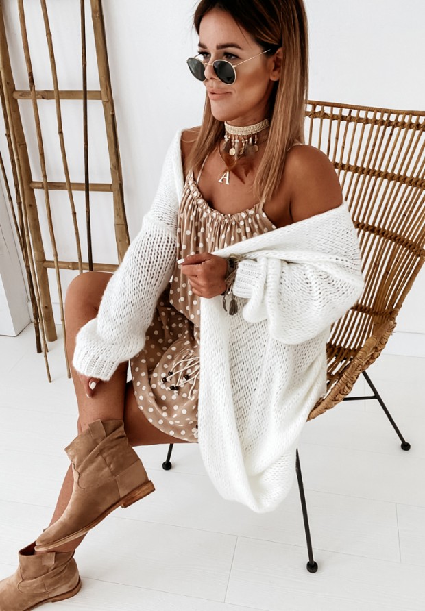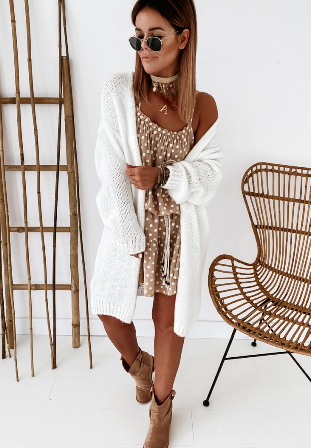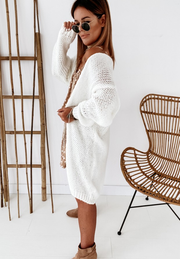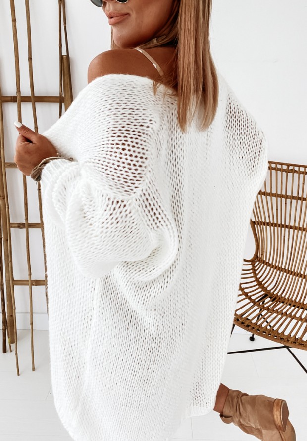 Original cardigan with a loose weave. The sweater will add charm to any styling. Ideal for skirts, as well as pants. Warm and pleasant to the touch. A perfect addition to any styling - available in several colors!