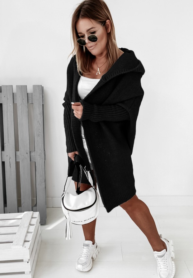 Long oversize cardigan with hood Montevista black