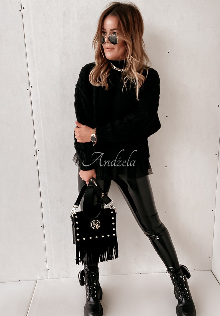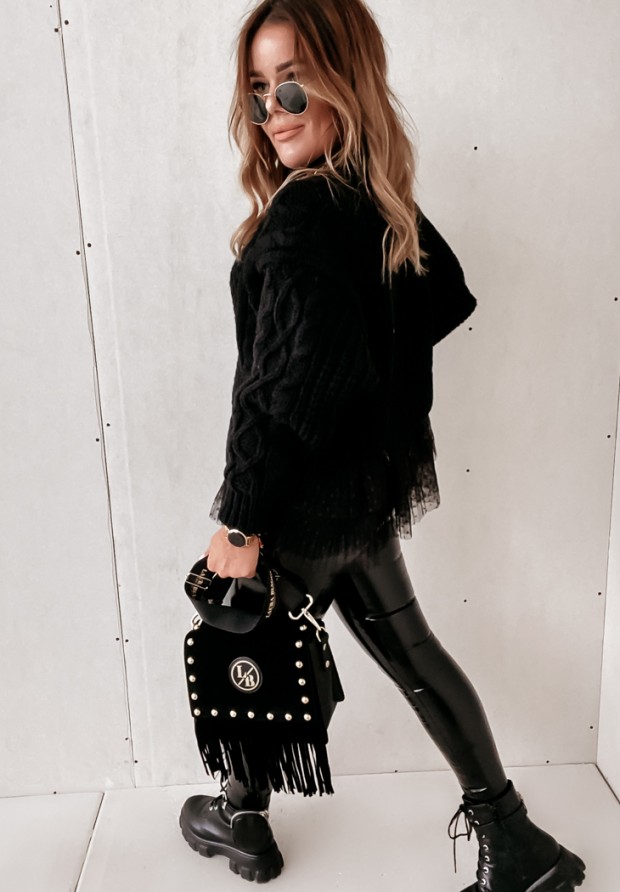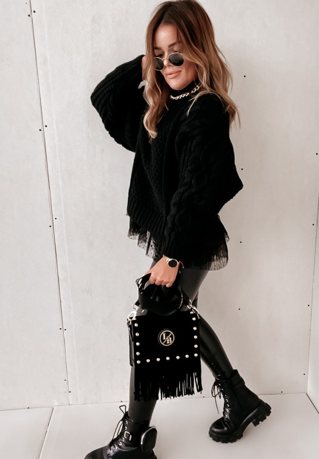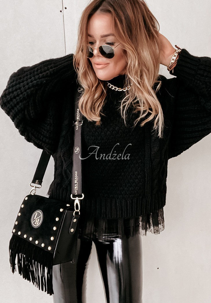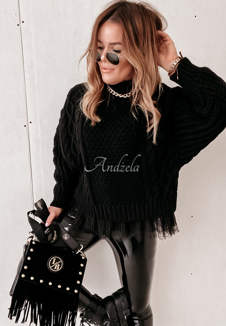 Exceptional sweater made of high-quality material is an excellent choice for composing many stylings for colder days. A model with an original weave and ribbed sleeves and bottom, which is additionally distinguished by a tulle frill. Compose it with leggings or a matching skirt. Available in several color versions.