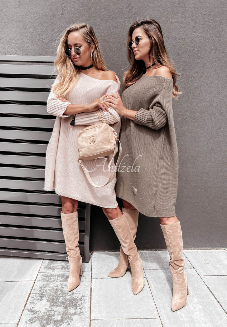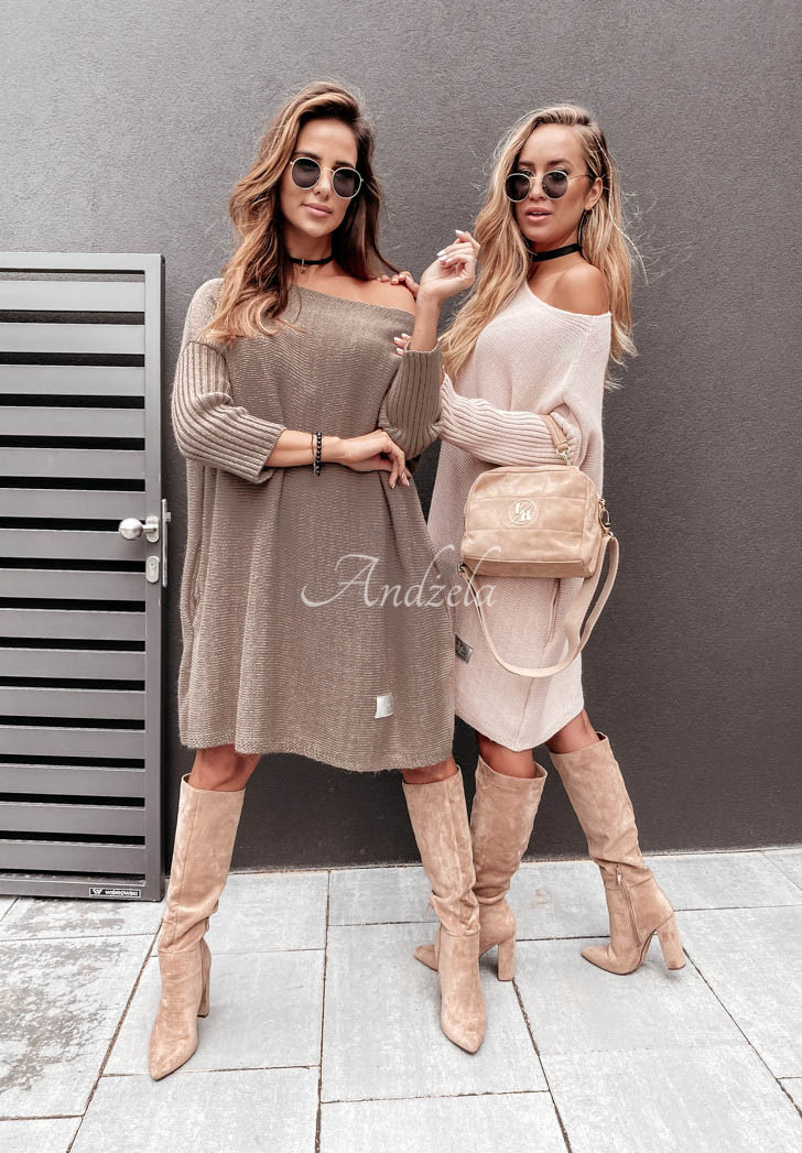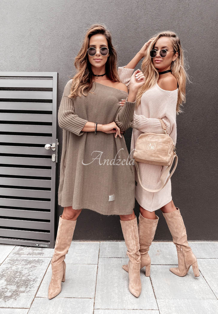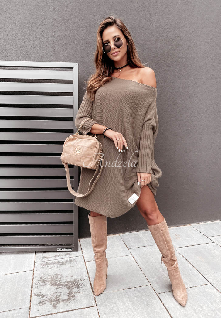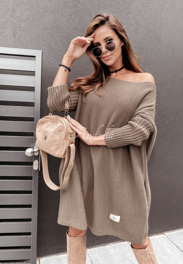 An oversized sweater with an elongated cut is a great base for everyday looks. It features ribbed sleeves and a lowered shoulder line. At the bottom there is a patch. This model will look fantastic styled as a dress to boots or boots. The product is available in many color versions. Design by Andżela!