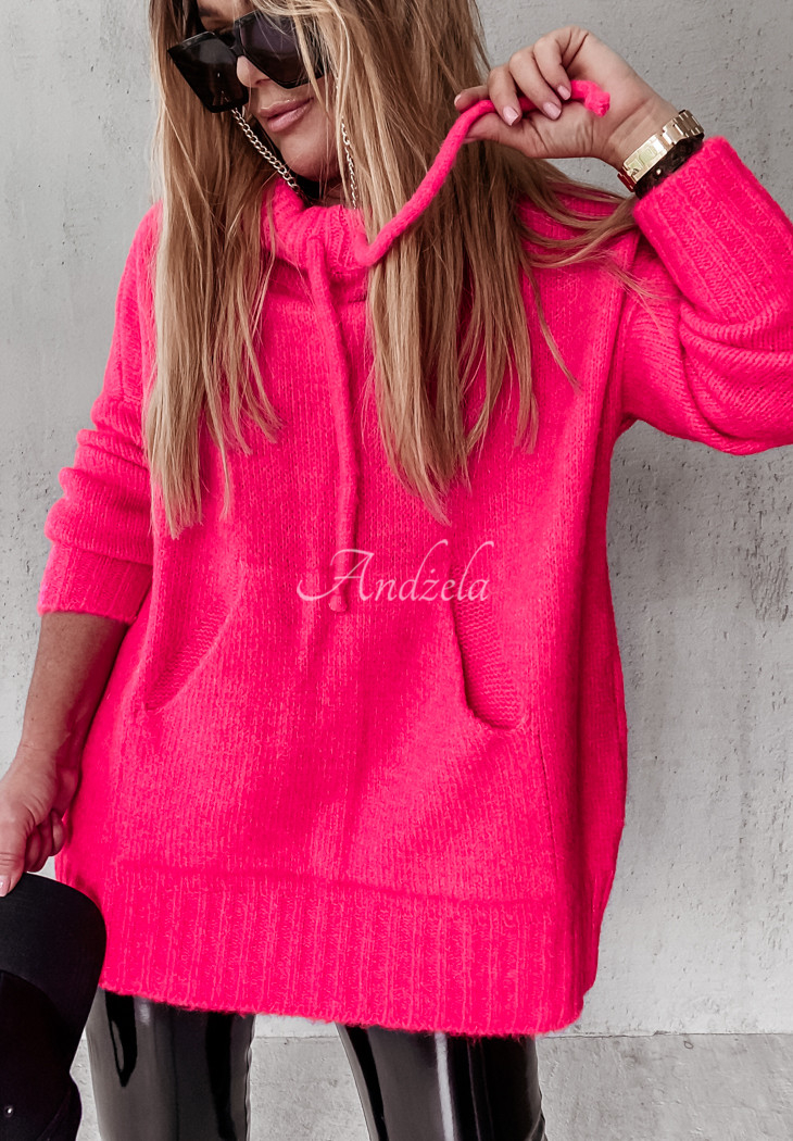 A loose sweater sewn from a soft, pleasant-to-touch knit fabric. The model has a drawstring hood, ribbed sleeves and a large pocket on the front. Available in several color variations. Designed by ANDŻELA!