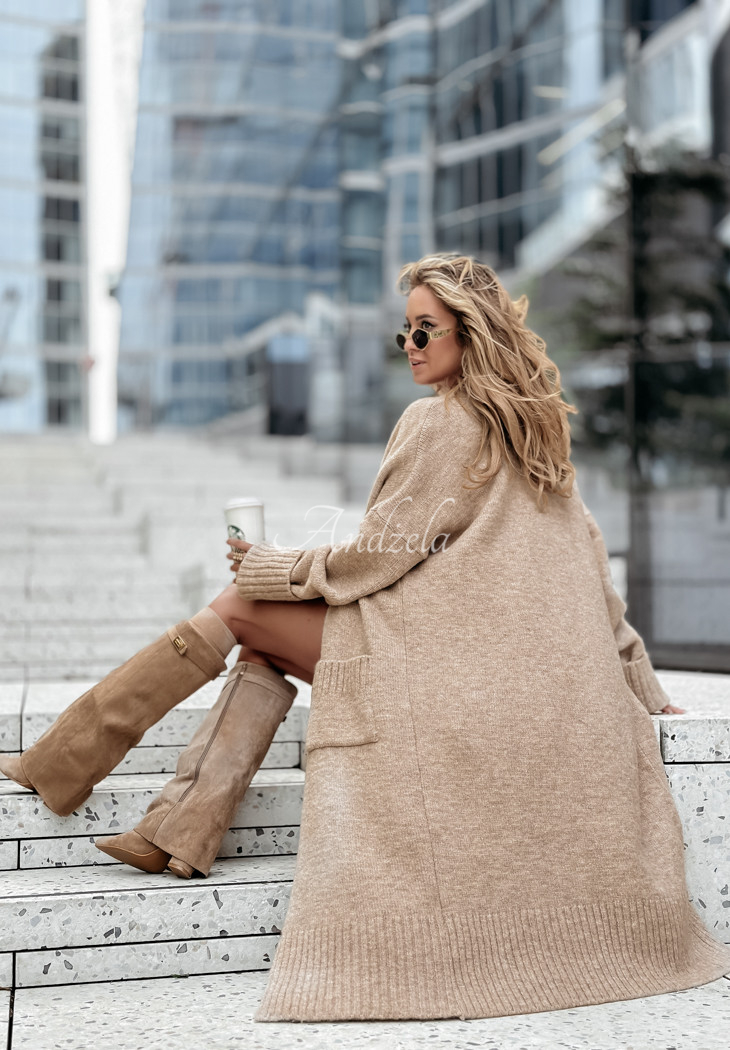 Long oversize cardigan with pockets Marbelio beige