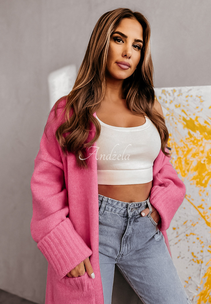 A long cardigan with an oversized cut is definitely an indispensable part of any autumn-winter closet! It is distinguished by a delicate weave, has pockets, as well as welts at the sleeves. This proposition is perfect for comfortable everyday styling.