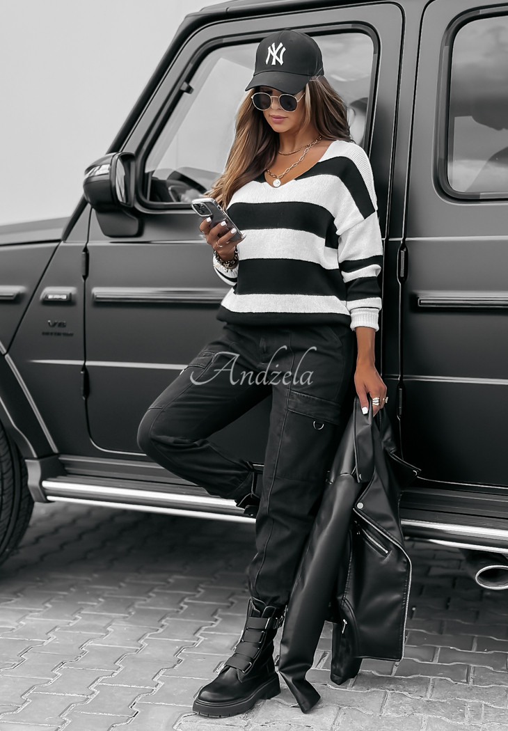 Striped sweater with neckline Autumn Stripes white and black