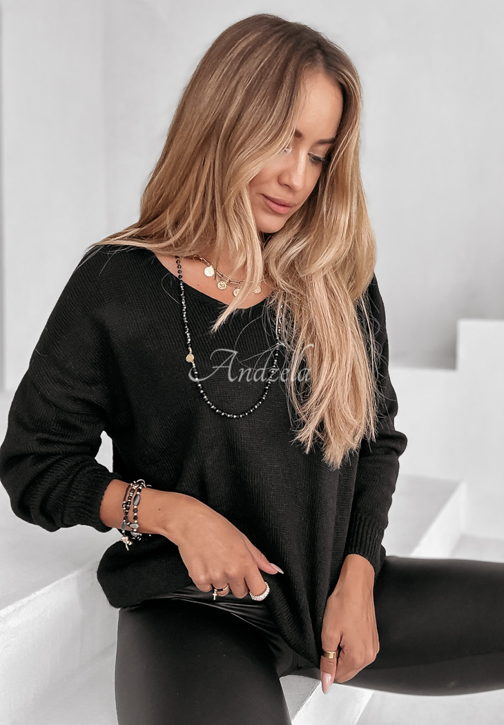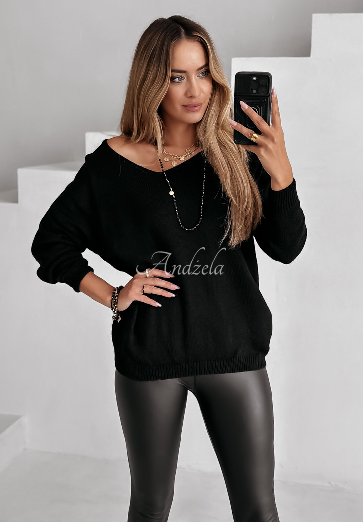 A lightweight sweater with a v-neck is an excellent choice for many everyday outfits. The model has a slight ribbing at the ends of the sleeves and at the bottom. Available in many color versions. Design by ANDŻELA!