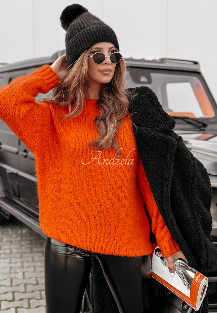An oversize sweater made of high-quality fabric is a great choice for styling for colder days. The model with a rounded neckline and lowered shoulder line has ribbed cuffs, as well as at the lower edge. Available in several color versions.