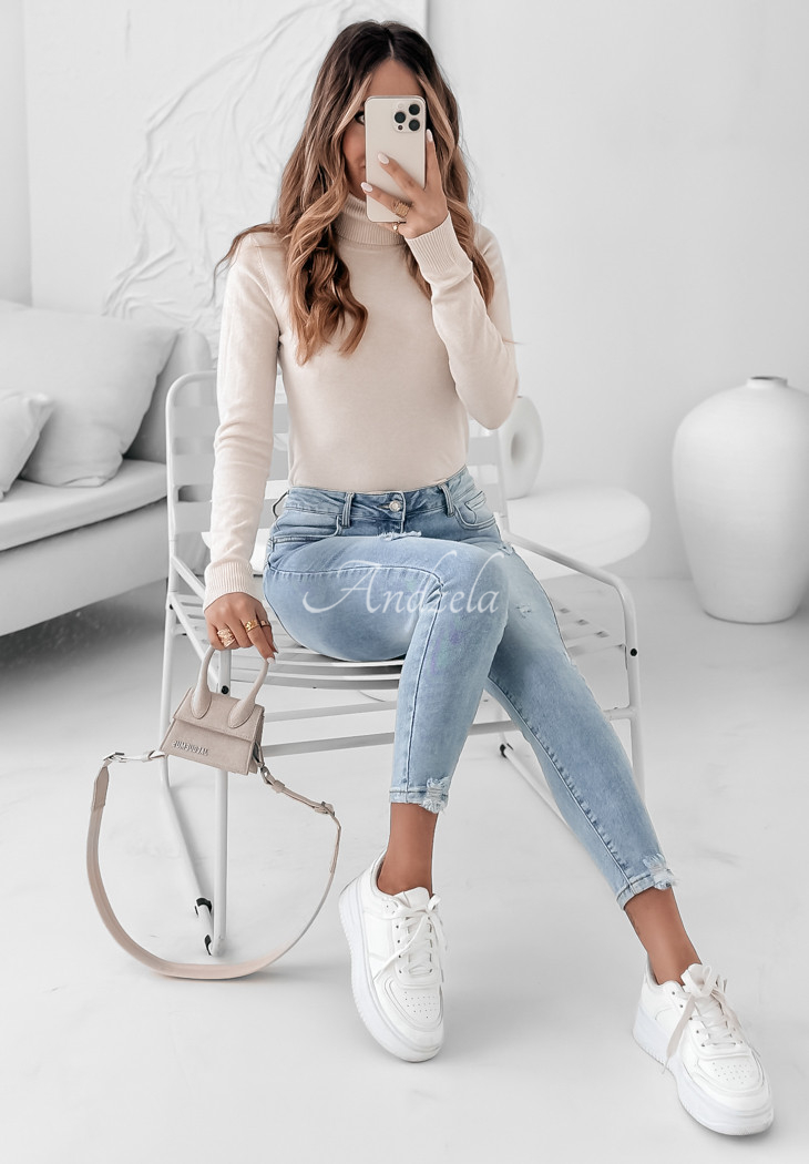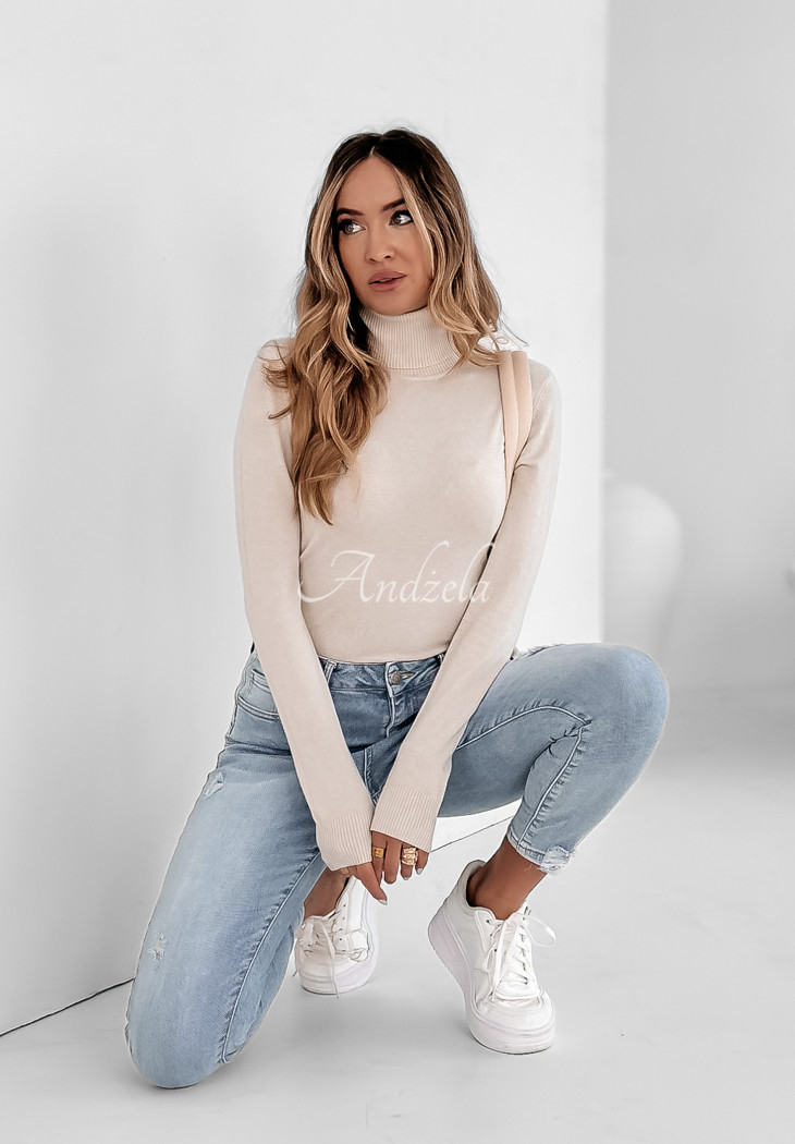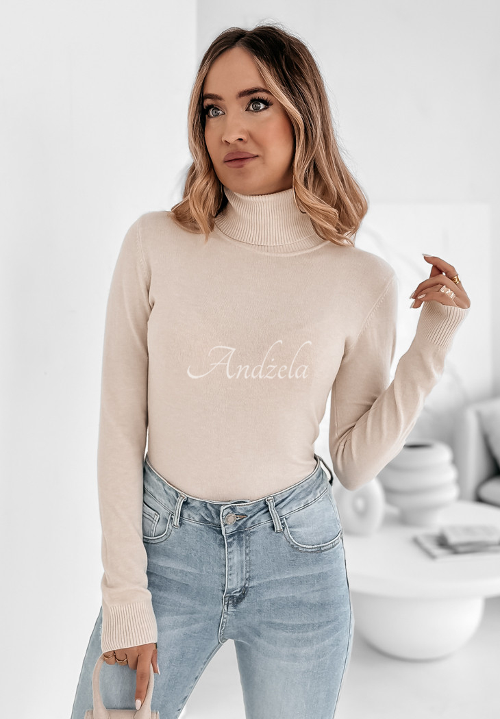 A fitted turtleneck sweater is an indispensable part of any closet, modern woman. This model is ideal for everyday and even elegant styling. It was made of elastic and extremely pleasant to the touch fabric, which will provide you with comfort and convenience while wearing it. It will work great under a coat or a ramoneski. It is available in many color variations.