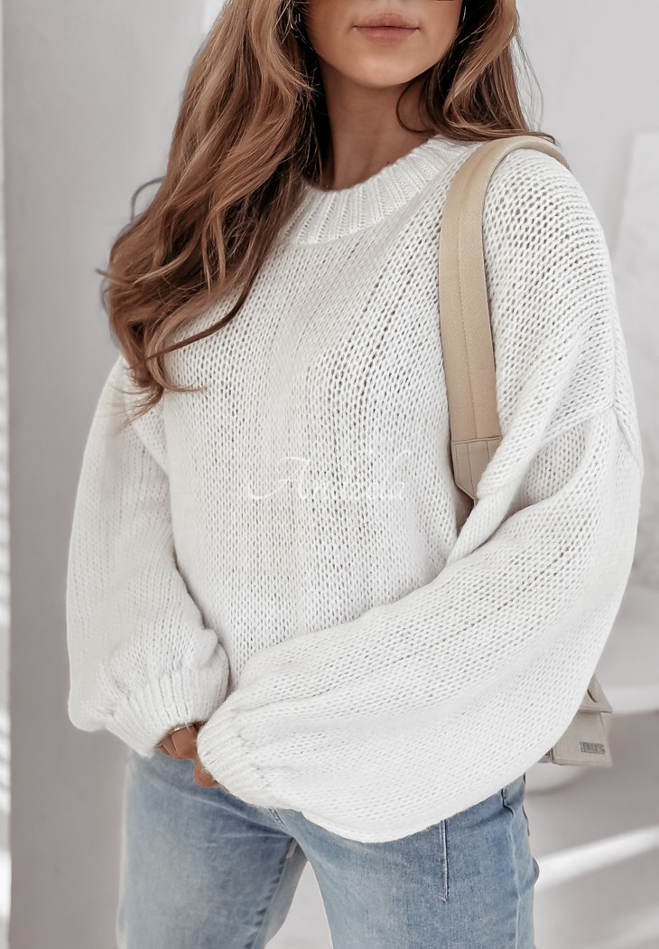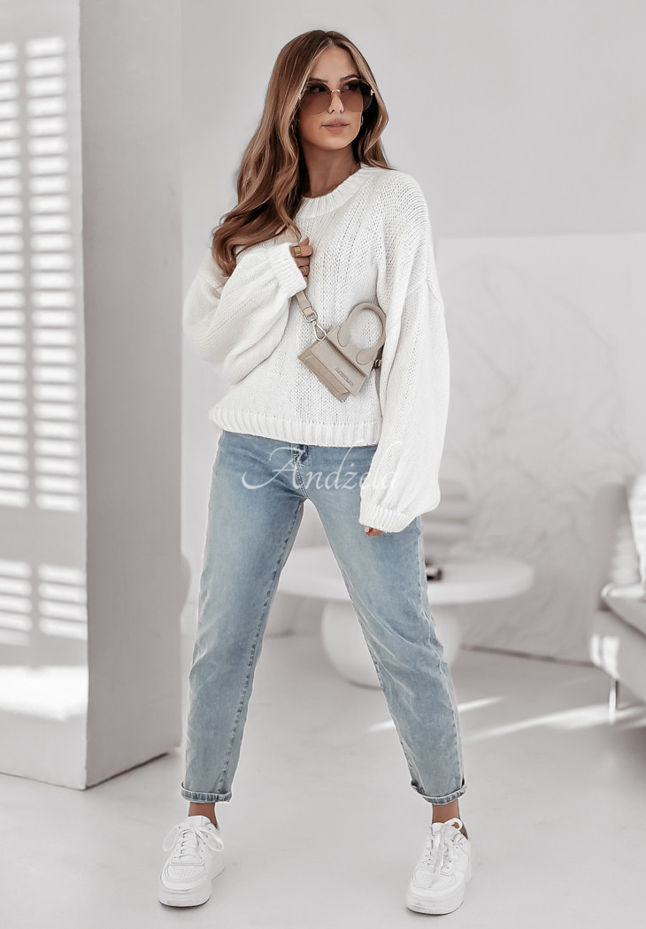 An oversized sweater is a perfect base for many everyday outfits. This model with a rounded neckline has ribbed cuffs and hem. Available in two colors. Designed by ANDŻELA!