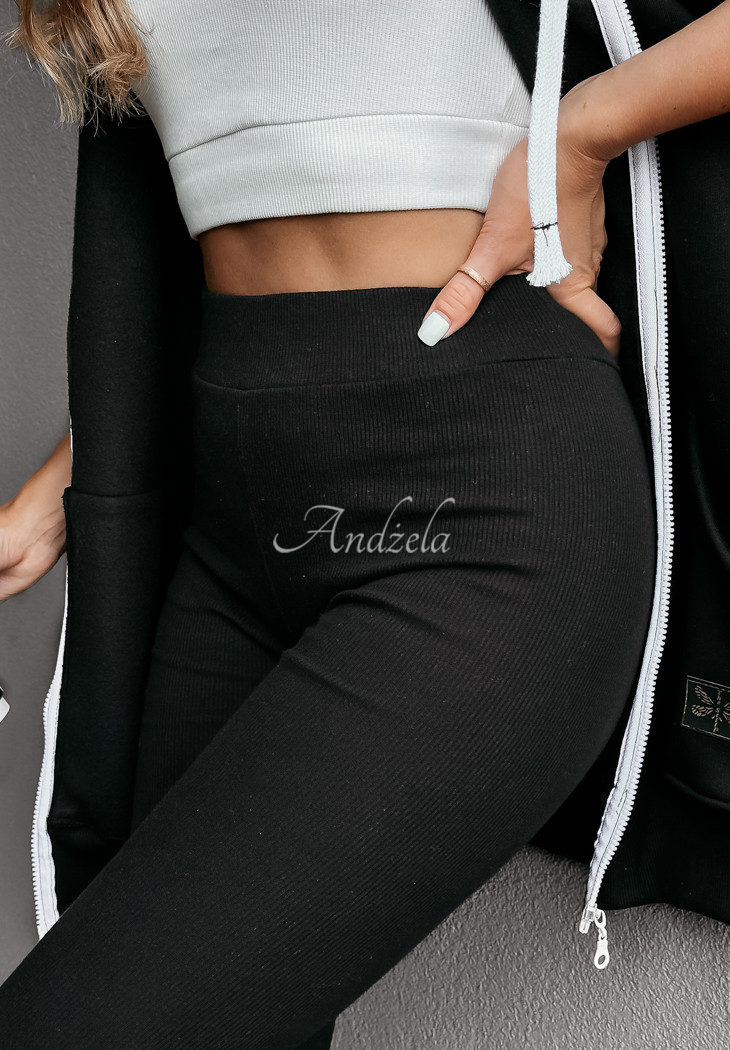 The ribbed leggings are a comfortable option, perfect for everyday as well as sporty looks. Featuring a wide elastic waistband, they perfectly fit the figure, ensuring comfort. This proposal is a basic that will present itself really fashionable and stylish. The product is made of high-quality material, and is available in many color variants.