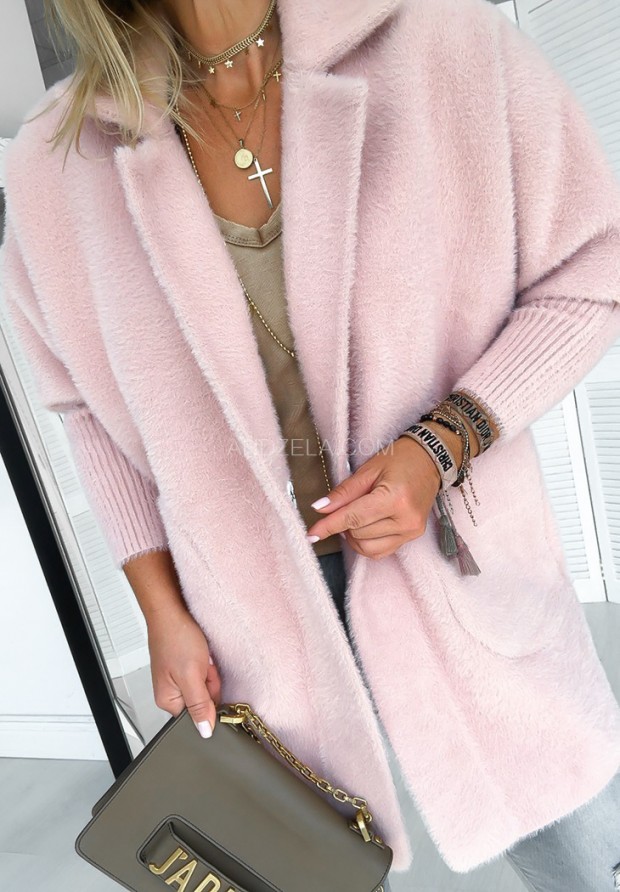 The coat is made of very fashionable and extremely pleasant material. Warm, ideal for spring/autumn. Oversize, loose cut to fit elegant, casual, as well as sporty styling. Fastened with a concealed fastener, sleeves finished with wide ribbed cuffs. It has a collar and two deep pockets on the sides. Available in several colors.