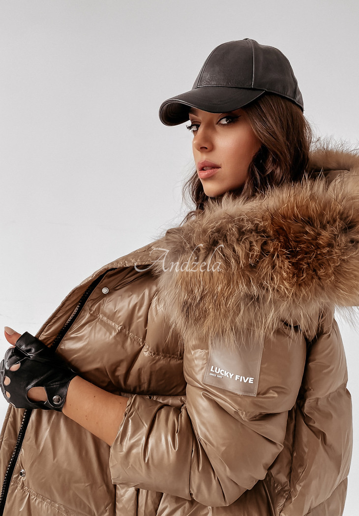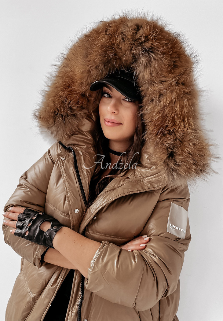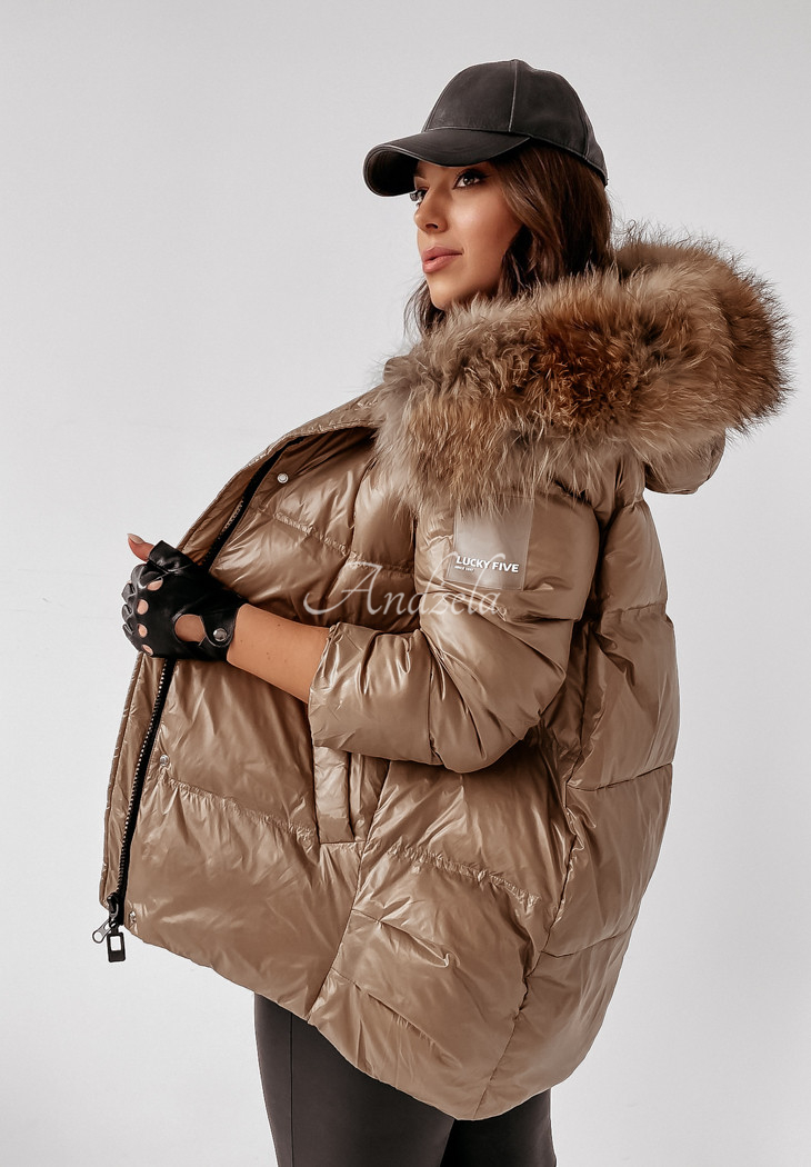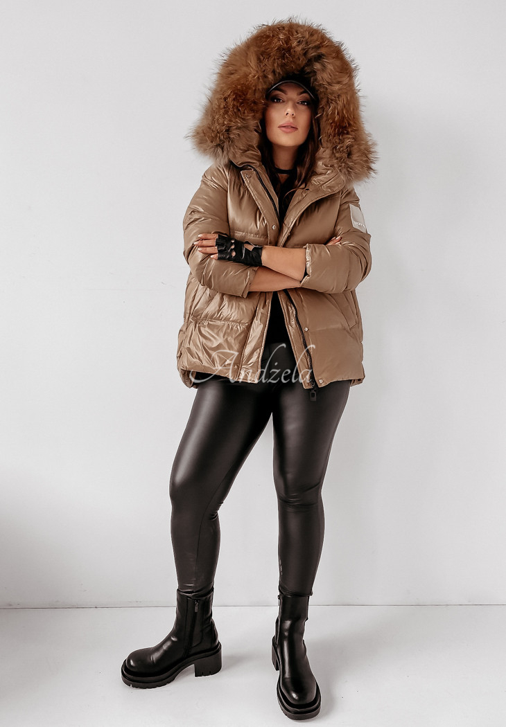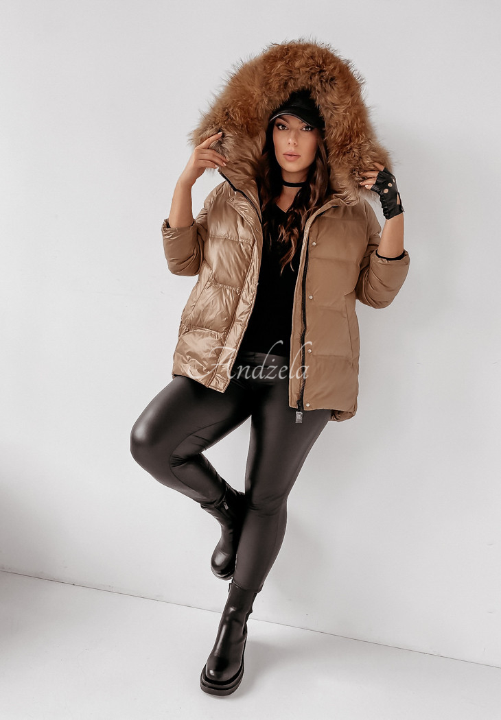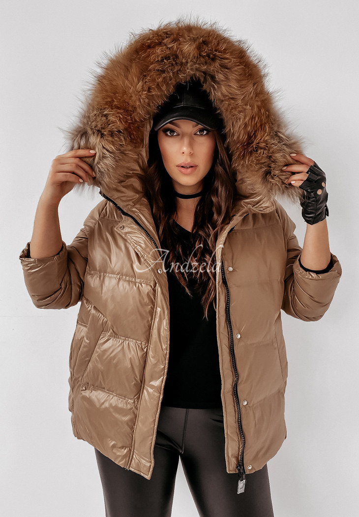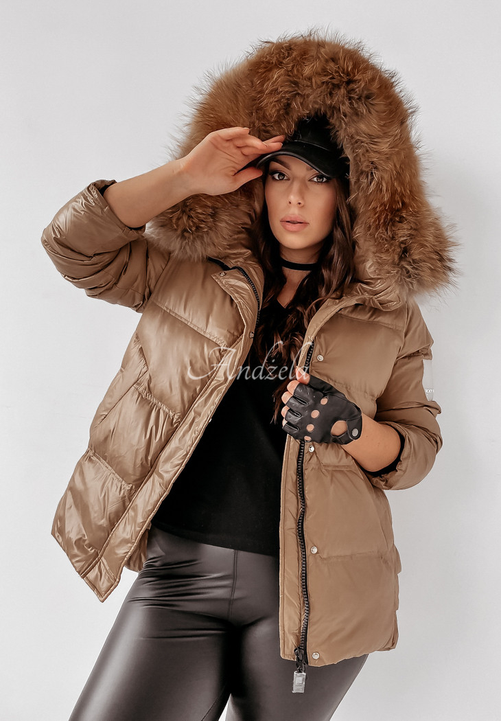 The quilted jacket with detachable natural fur at the hood is an ideal choice for the autumn-winter season. The cut is fastened with a zipper and press studs, and has pockets. The sleeves are finished with welts, additionally there is a patch on one of them. The whole garment is insulated with natural down, making it perfect for cold days. This is a fantastic choice for everyday wear! The product is available in two color variants.