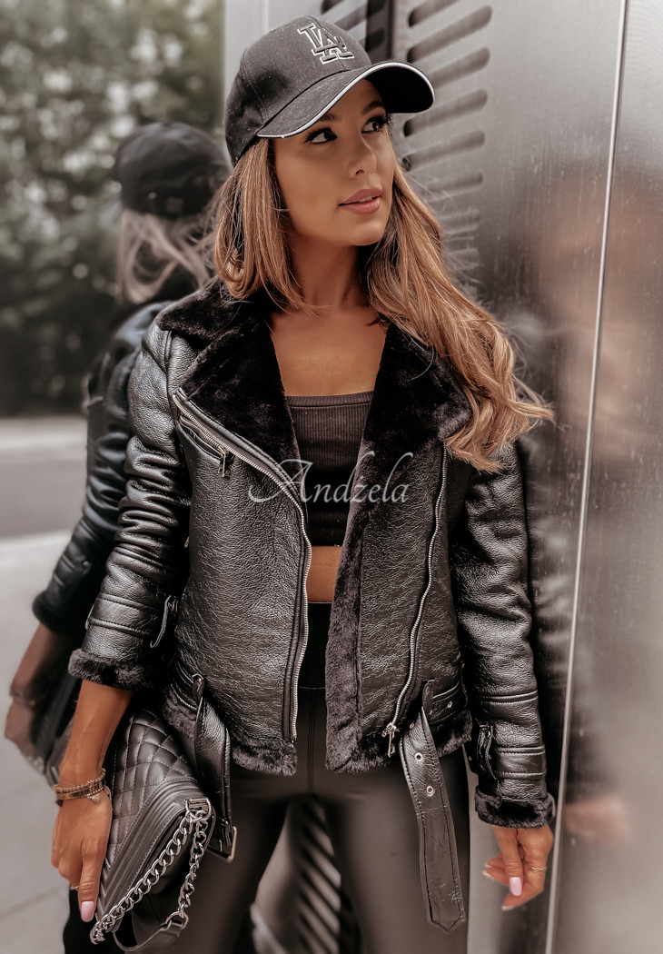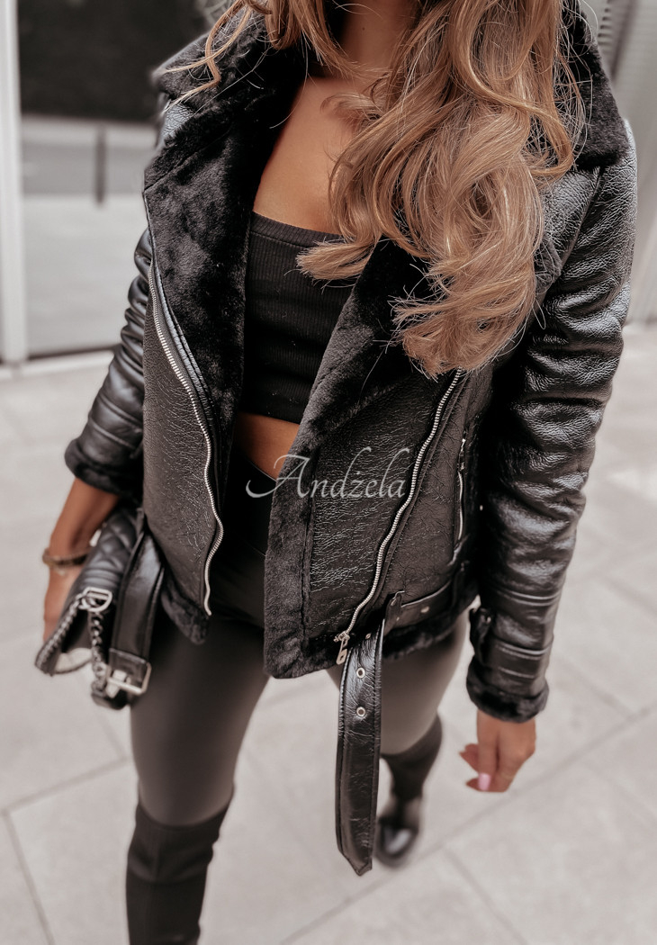 Ramonet made of imitation leather is a proposal with character, ideal for autumn looks. It is insulated on the inside with an extremely pleasant to the touch teddy bear, also located on the collar. It is zippered and has two zippered pockets. Adjustable straps have been placed at the sleeves, collar and bottom. This model will look fantastic when paired with leggings and boots. The product is available in two color variants.