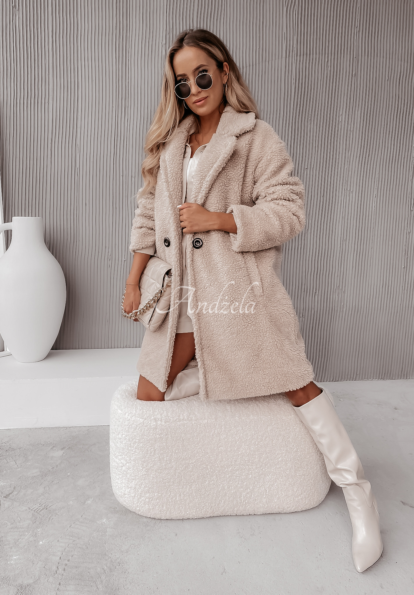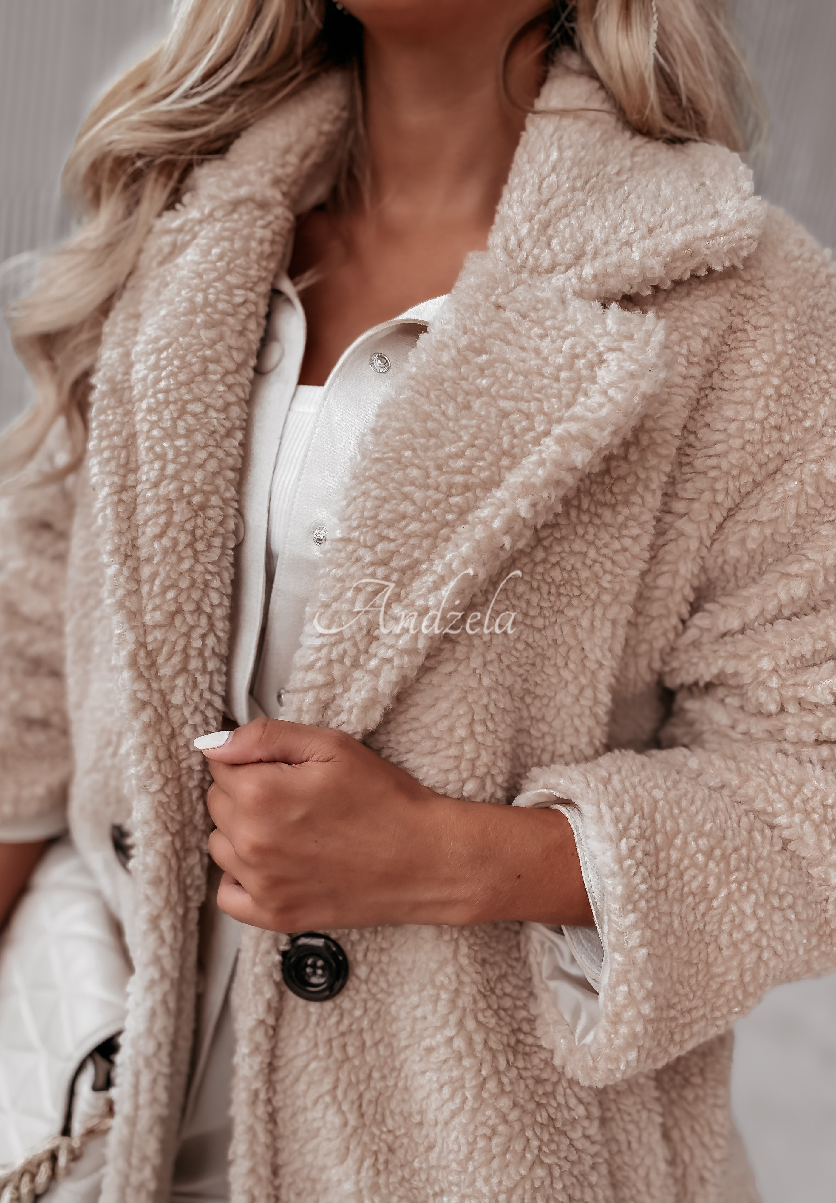 The imitation sheepskin coat is a perfect complement to autumn looks. The model has an oversized cut and is buttoned. It has a collar, as well as pockets located on the front. It will phenomenally present itself in everyday and even elegant looks. The product is made of high-quality material, and is available in two color variants.