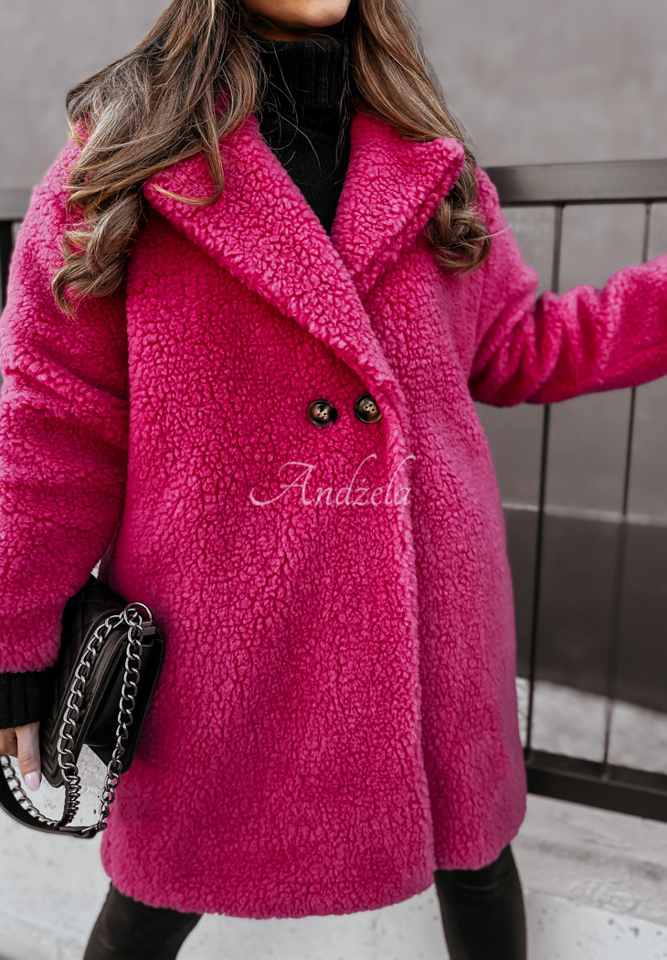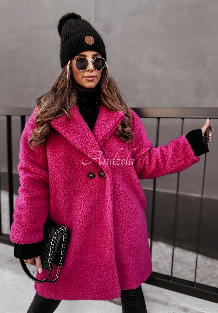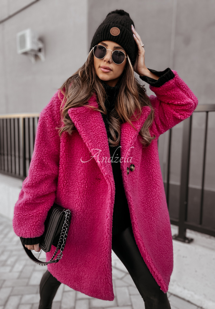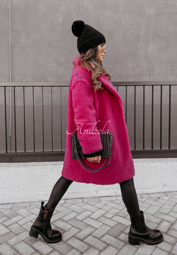 A soft coat made of imitation sheepskin is an extremely fashionable proposal for this season. The model has an oversized cut, is buttoned, has pockets and a collar. It will phenomenally complement cooler day loos and will present itself really stylish. The product is available in several color variants.
