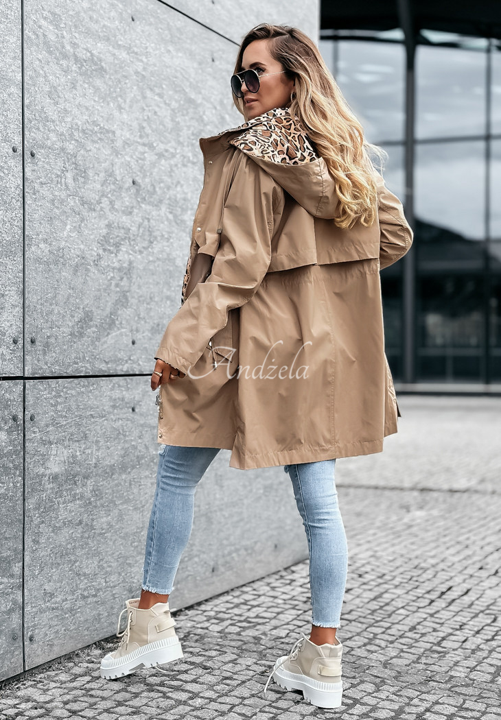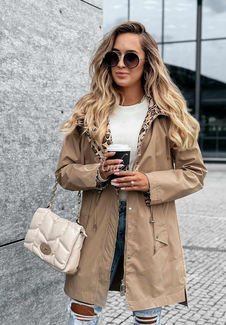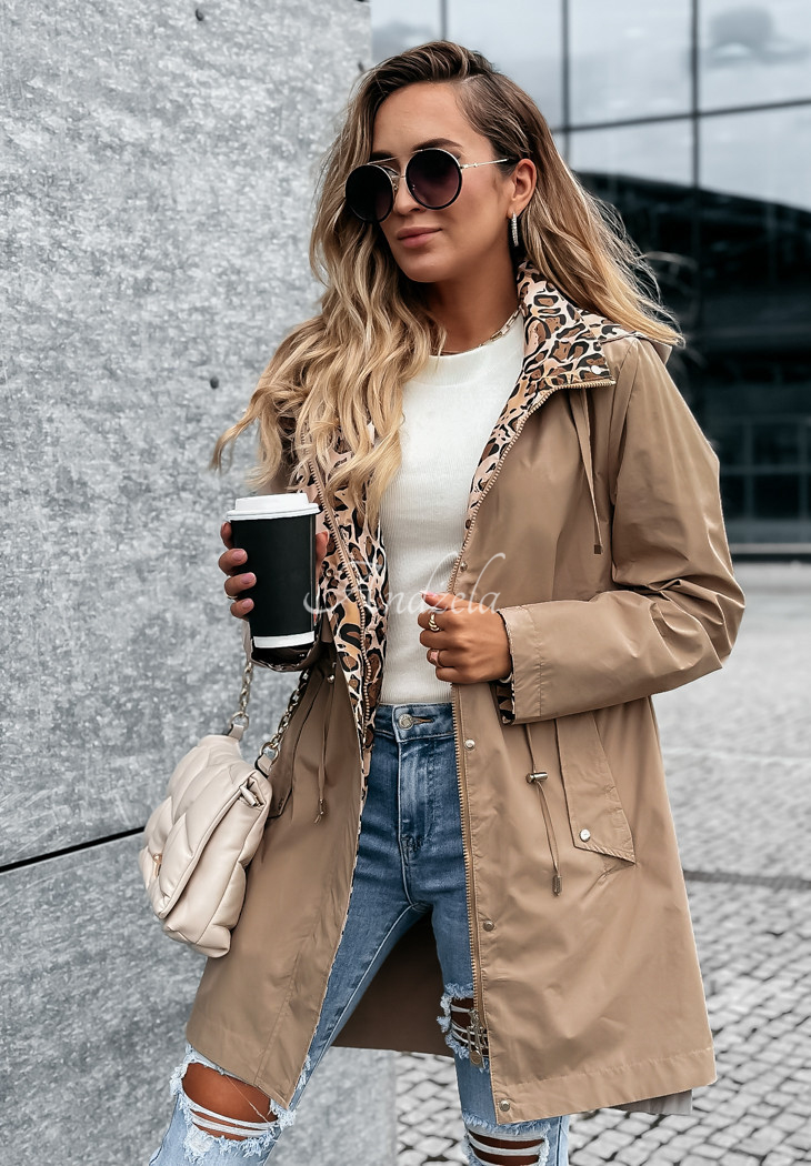 A lightweight parka with leopard print accents is the perfect choice for the start of the autumn-winter season. It's a model with a detachable hood, as well as adjustable sleeves. It is fastened with a zipper and press studs, has pockets on the front and a drawstring waist, allowing you to emphasize the assets of your figure. The whole piece will work phenomenally well in basic loos for colder days.