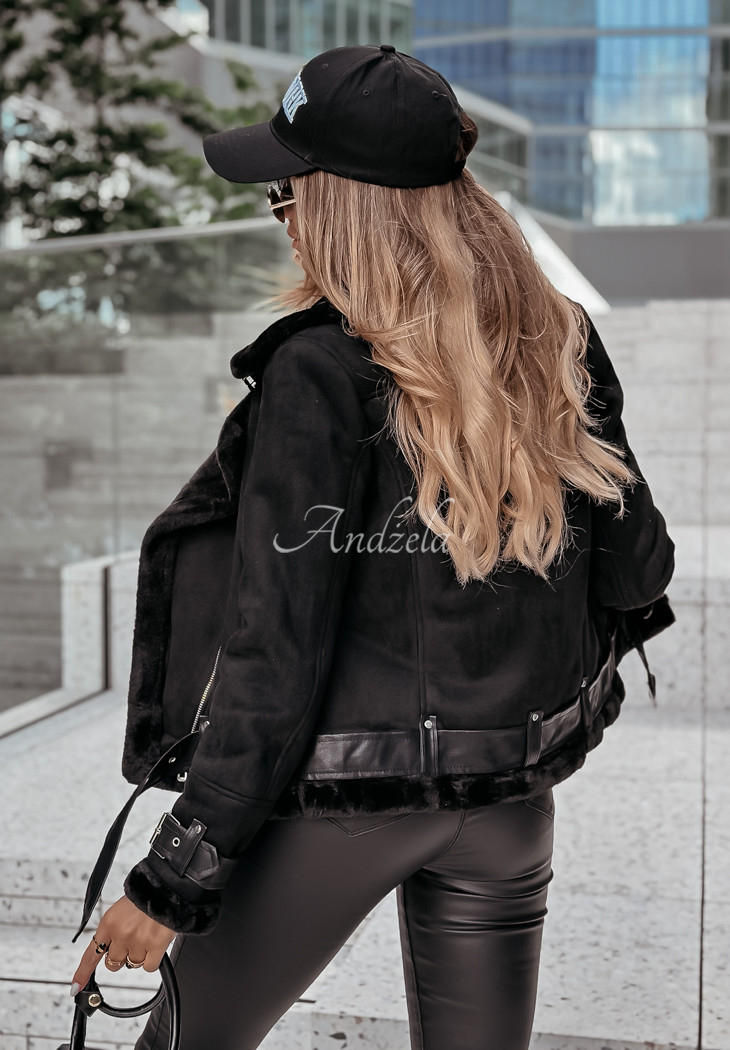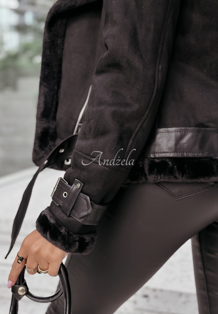 Ramoneska made of imitation suede is a proposal with character, ideal for autumn looks. It is insulated on the inside with extremely pleasant-to-touch sheepskin, also located on the collar. It is zippered, has two zippered pockets and one imitation one on the bust. Adjustable straps have been placed at the sleeves, collar and bottom. This model will look fantastic when paired with leggings and boots. The product is available in two color variants.