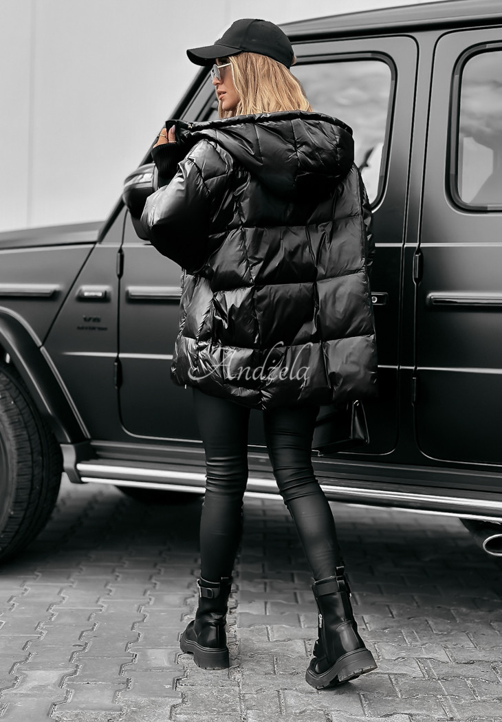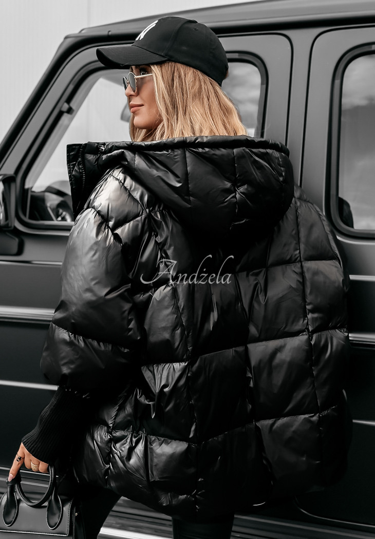 A quilted jacket insulated with natural down is a great choice for cold days. The zippered model features a hood with adjustable hem with snaps. The oversize cut jacket also has zippered pockets, as well as welts and strings for adjustment at the end of the sleeves. Available in a variety of color options.