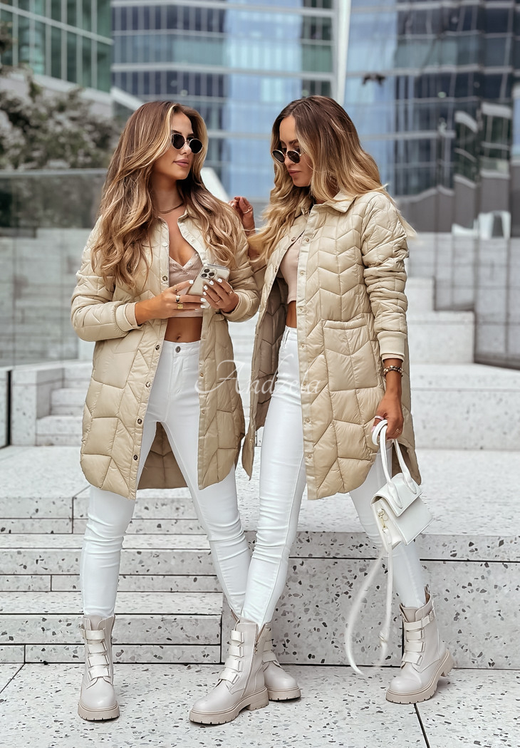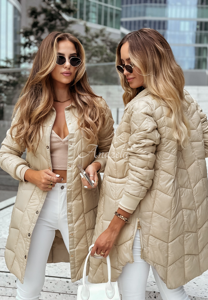 A quilted, slightly insulated jacket, fastened with press studs, is a perfect base for spring and autumn styling. The model with pockets is distinguished by zippers on the sides. The long sleeves are finished with a delicate welt. Available in several color versions.