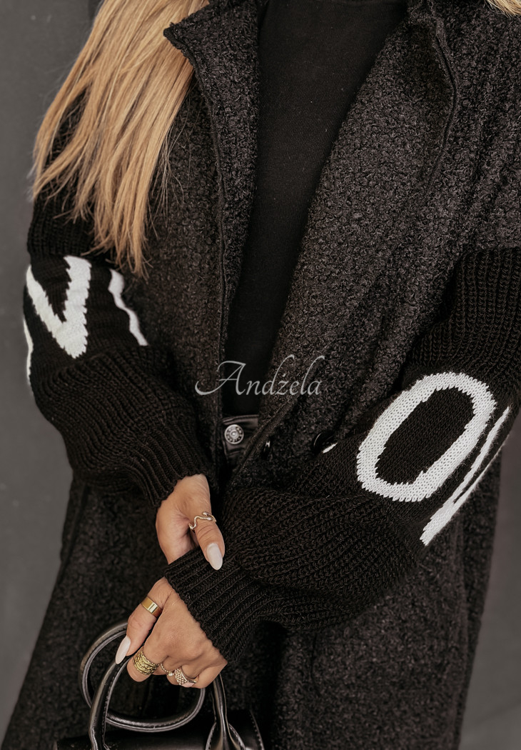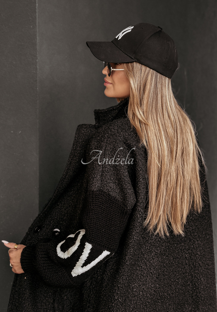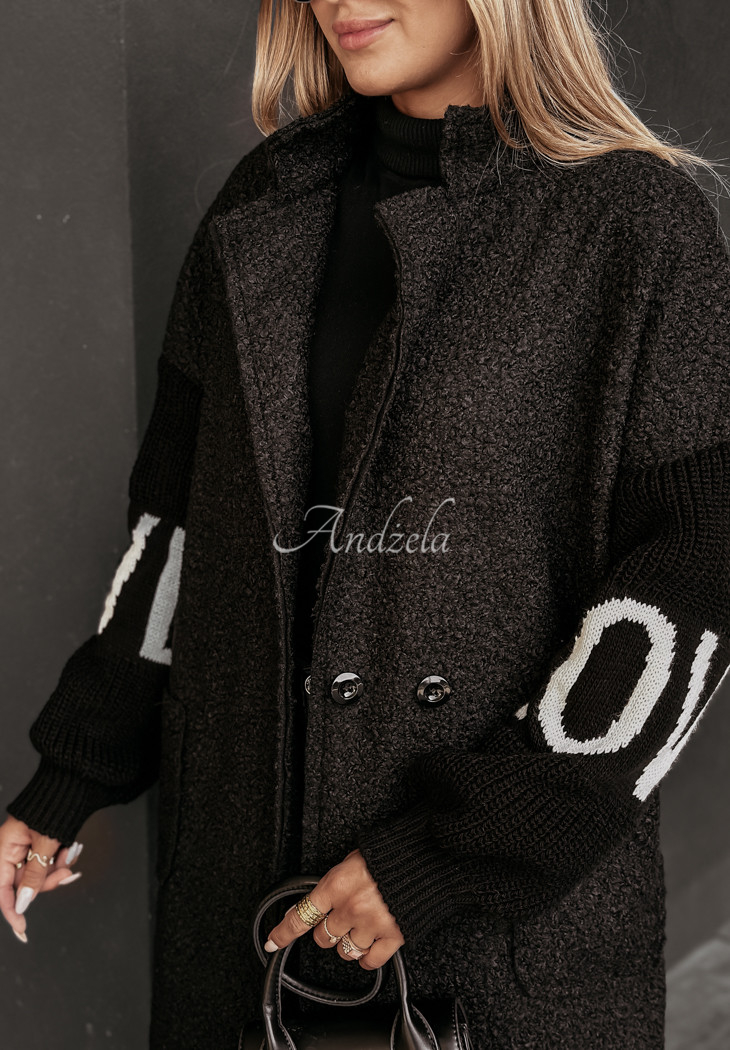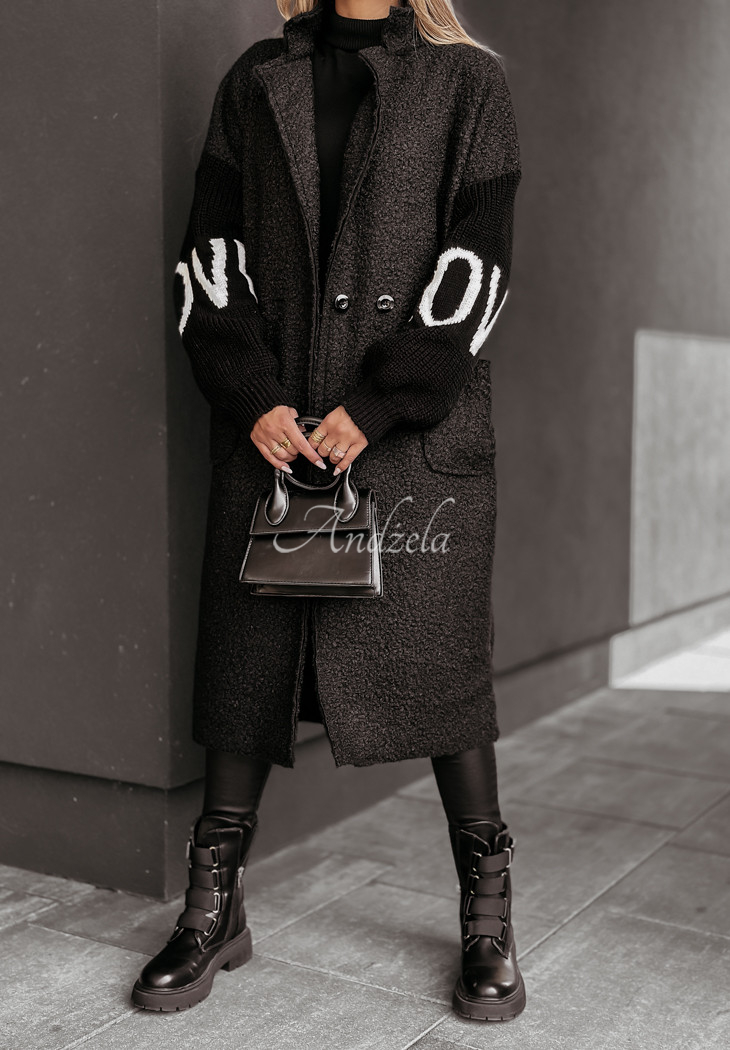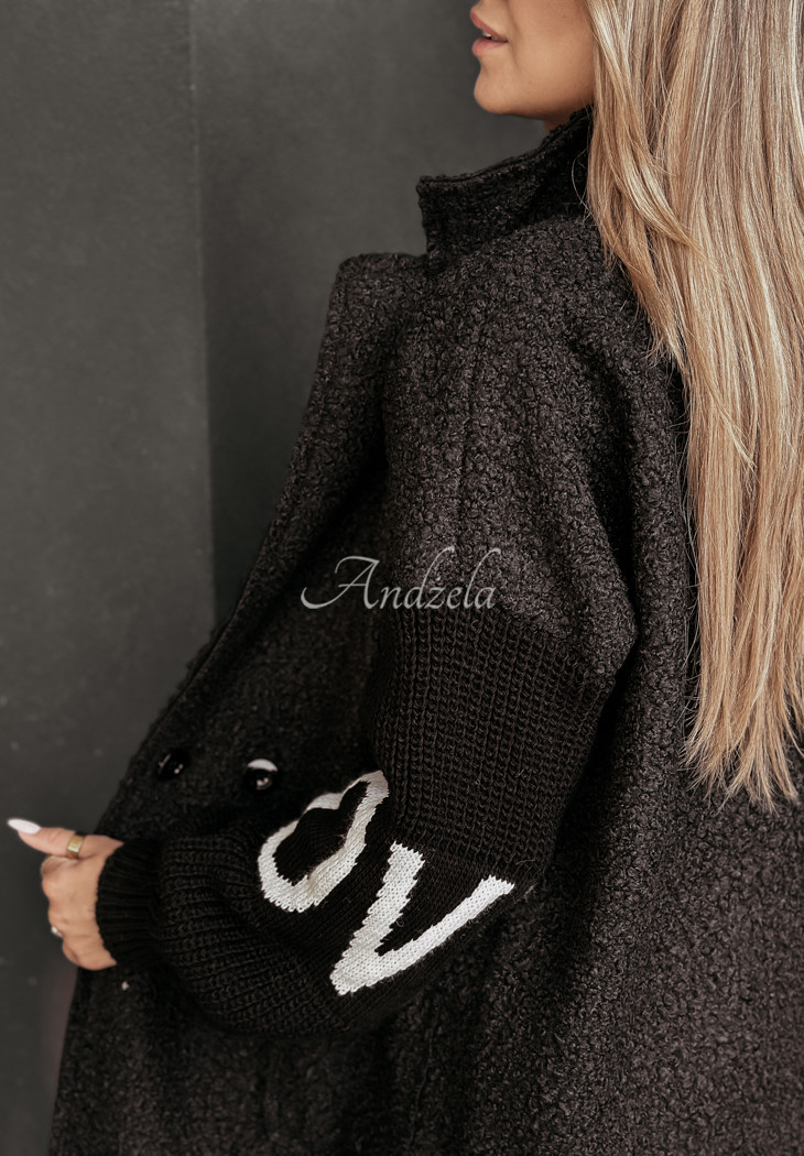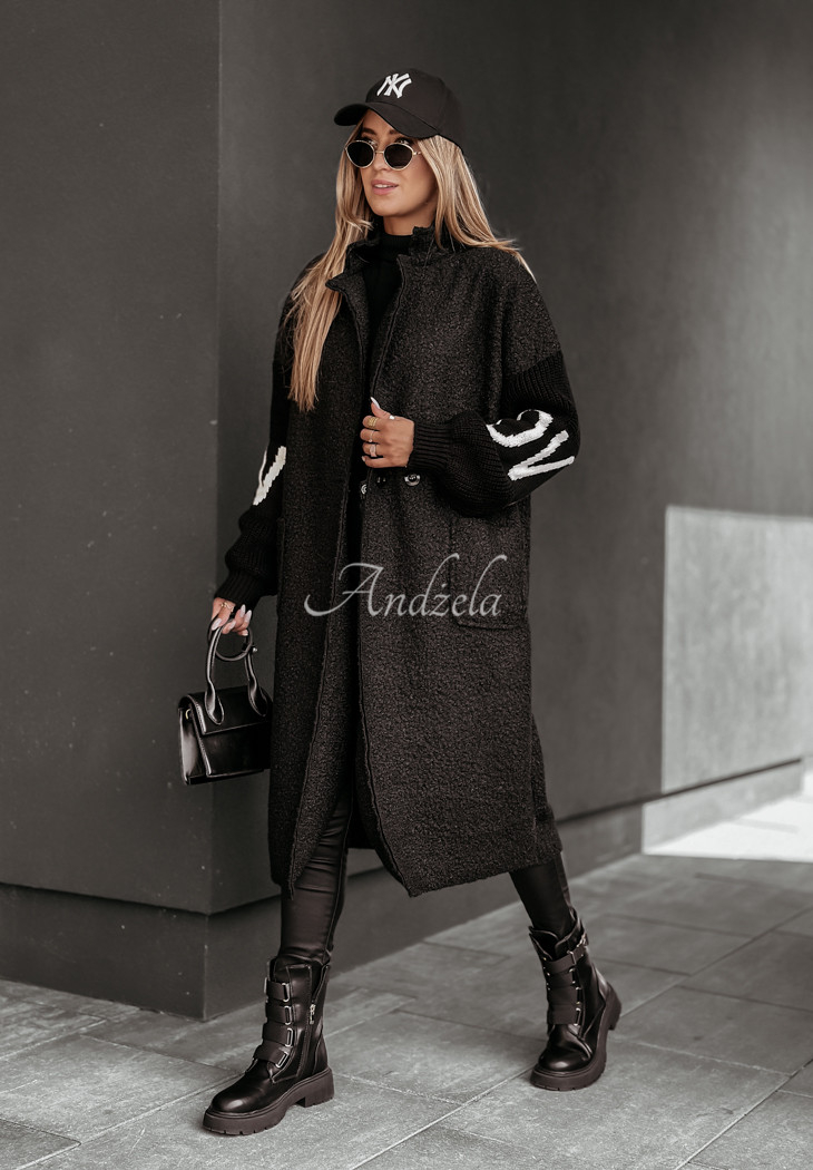 Buttoned imitation sheepskin coat is a great choice for cooler autumn days. The model with pockets on the front has sweater sleeves finished with ribbed cuffs. Available in two color versions.